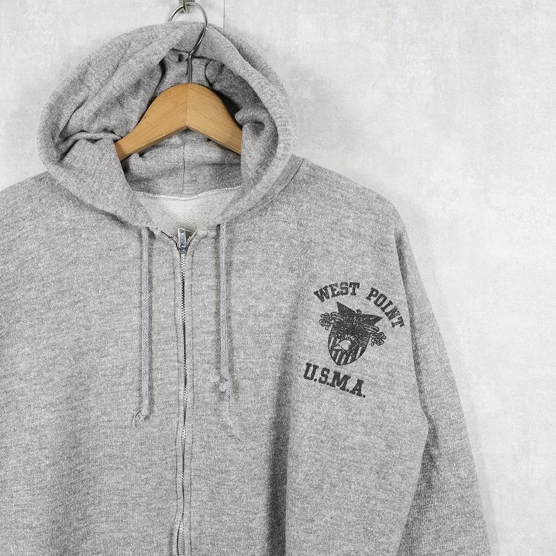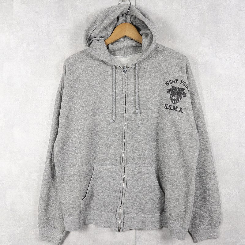 70〜80's ARTEX USA製 "WEST POINT U.S.M.A." プリントスウェットジップパーカー XL [159823]