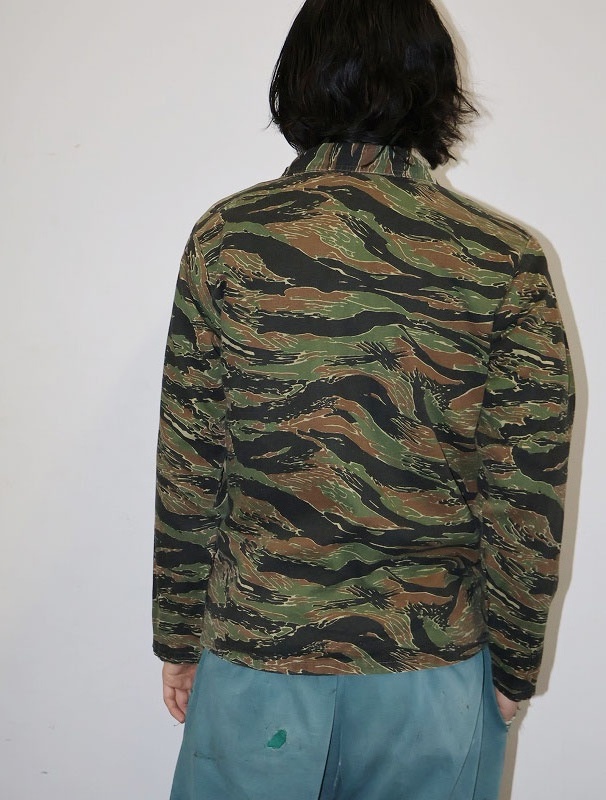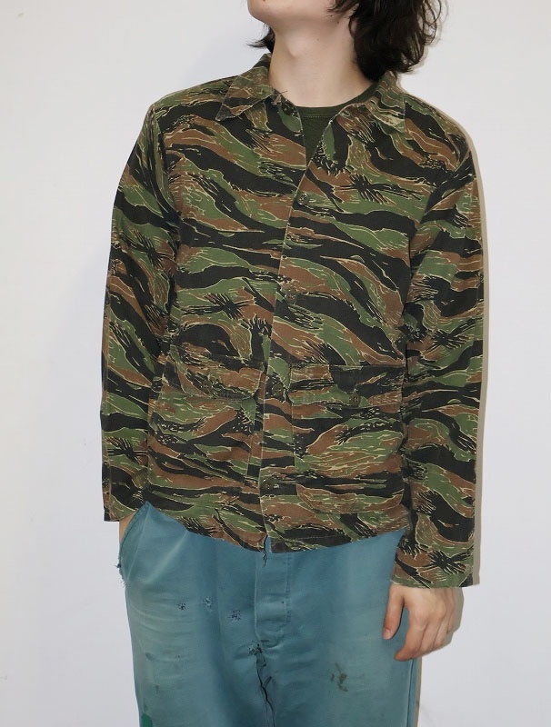70's〜 民間品 タイガーストライプカモ柄 コットンシャツ SMALL [159828]