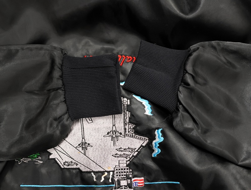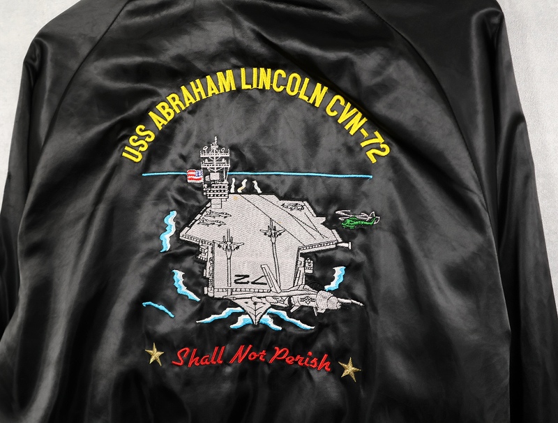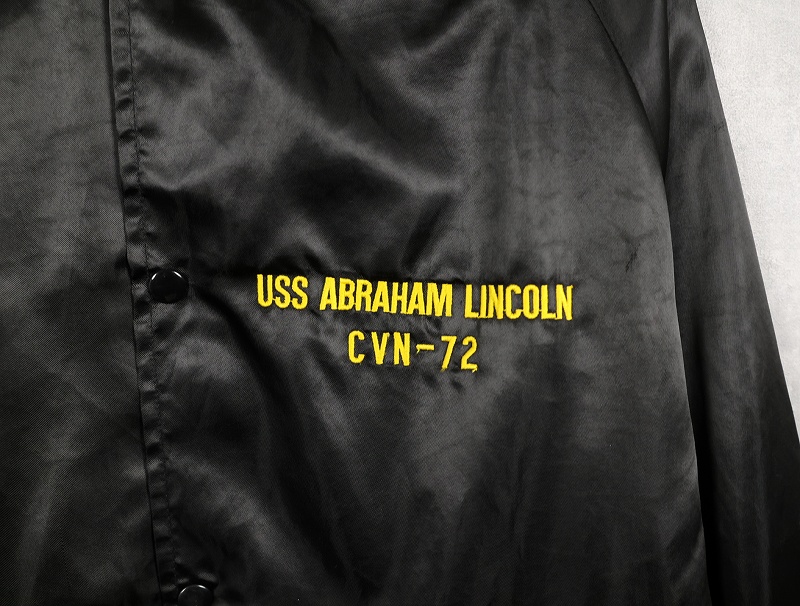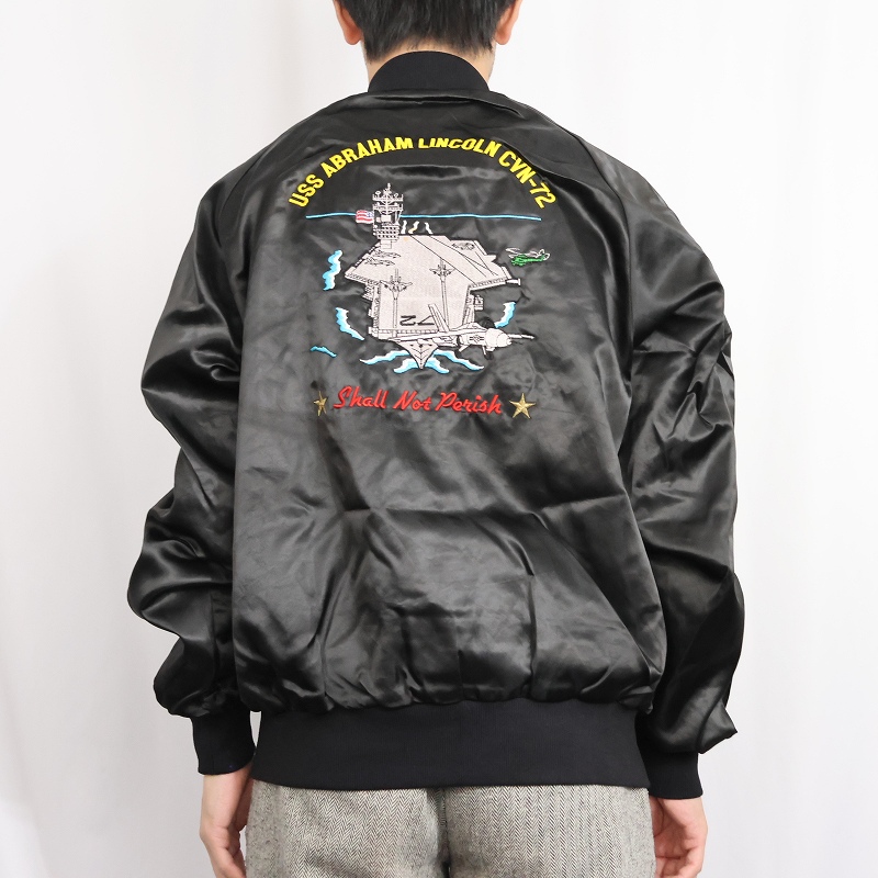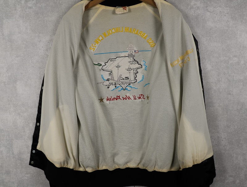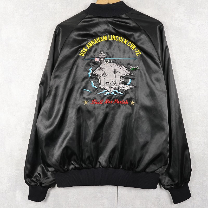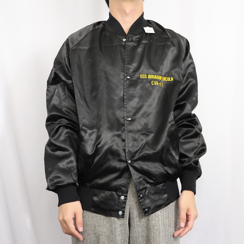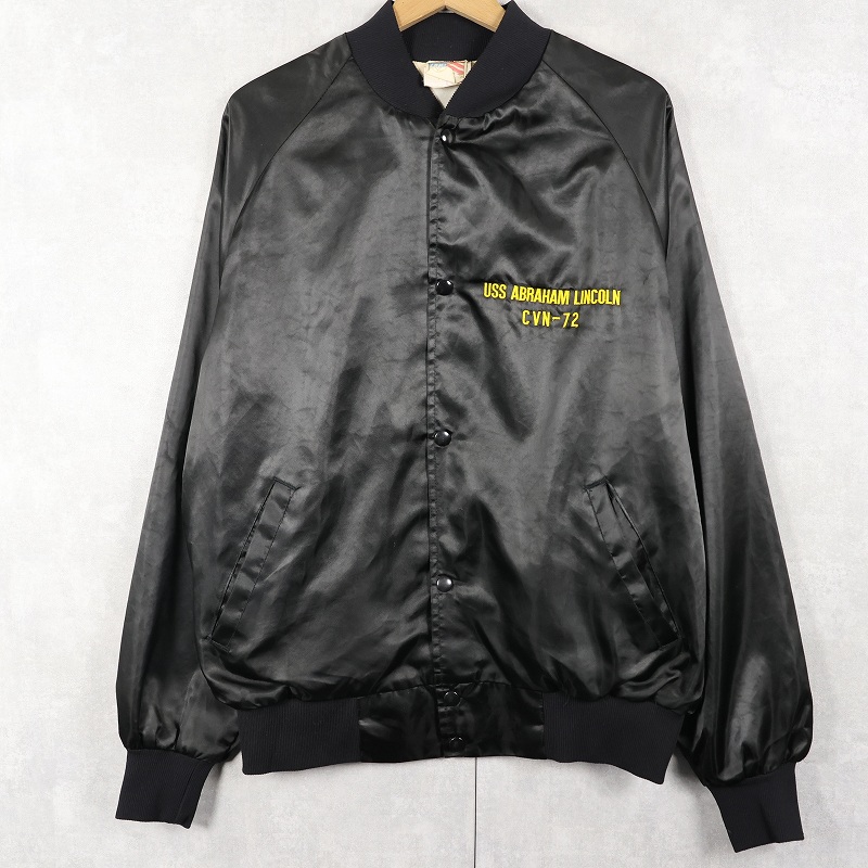 80's USA製 "USS ABRAHAM LINCOLN CVN-72" スーベニアジャケット BLACK L [159836]
