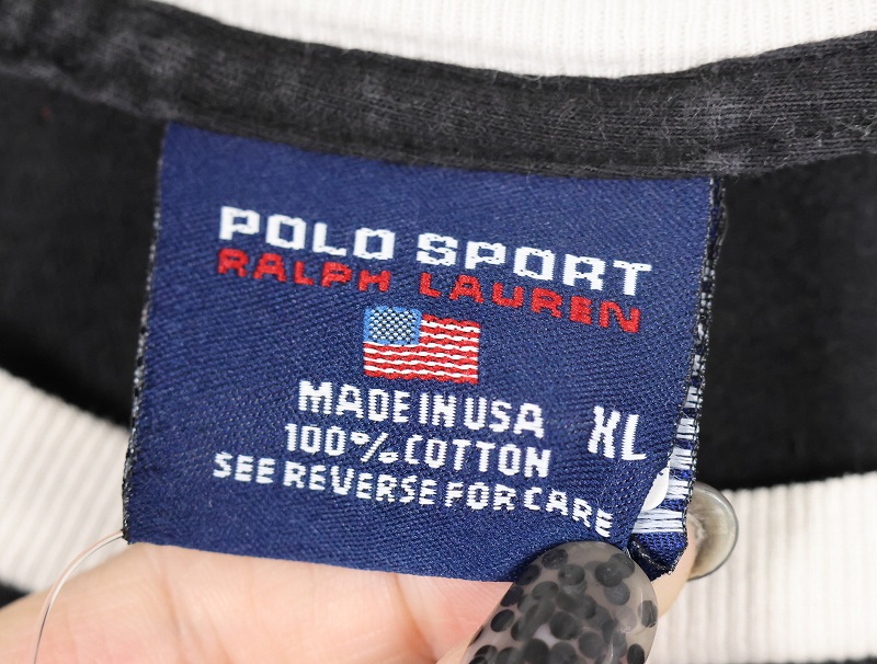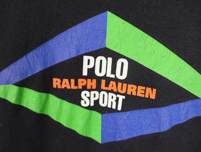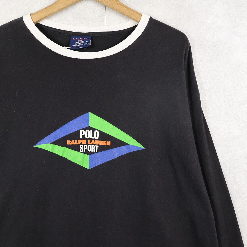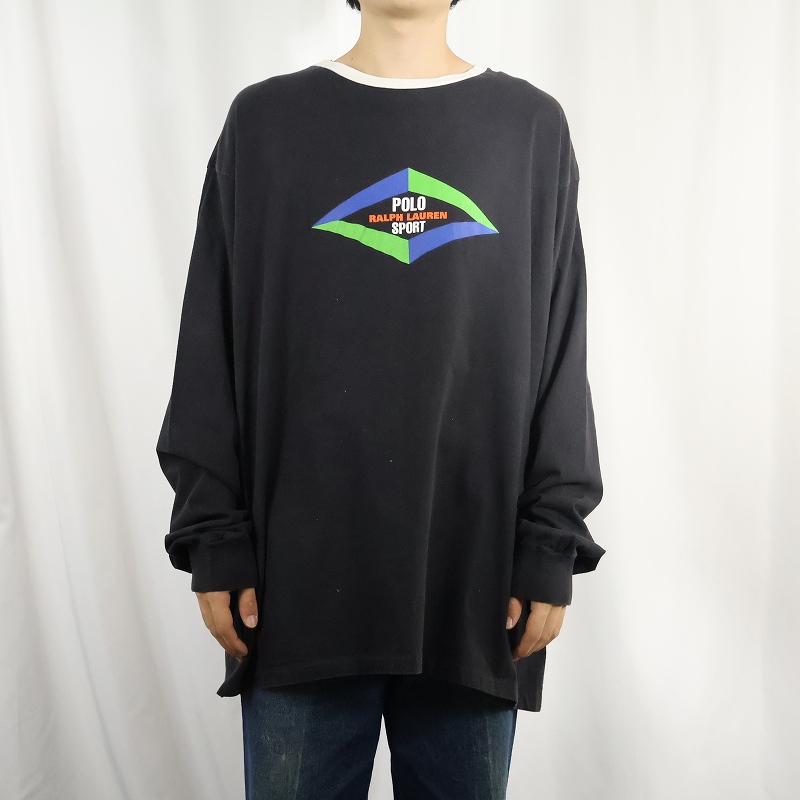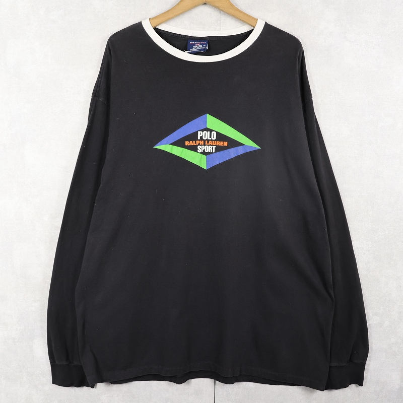 90's POLO SPORT Ralph Lauren USA製 ロゴプリントロンT BLACK XL [159846]