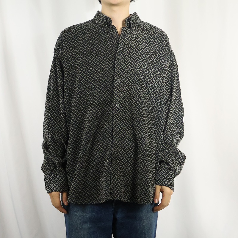 80〜90's North 44 総柄 コーデュロイボタンダウンシャツ L [159847]