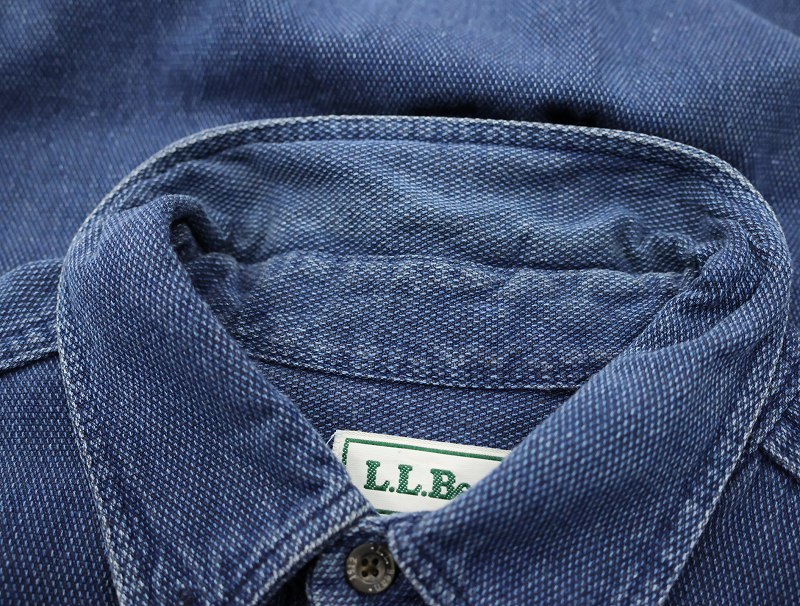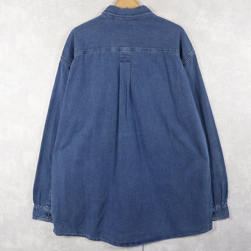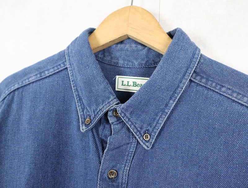 80〜90's L.L.Bean USA製 刺子織り インディゴコットンボタンダウンシャツ XL [159853]