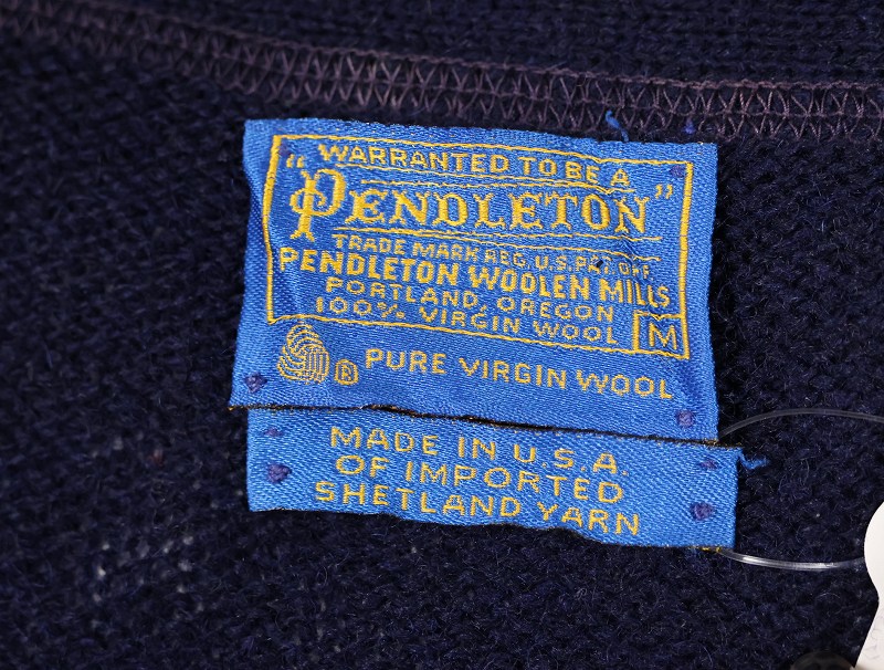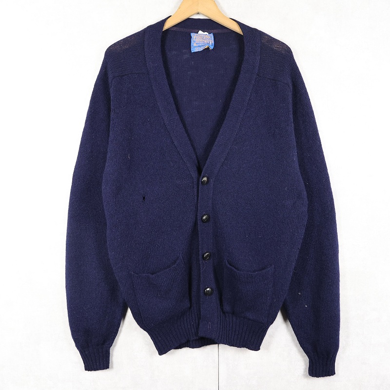 70's PENDLETON USA製 ウールニットカーディガン NAVY M [159881]