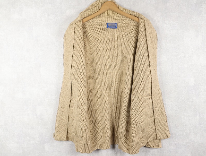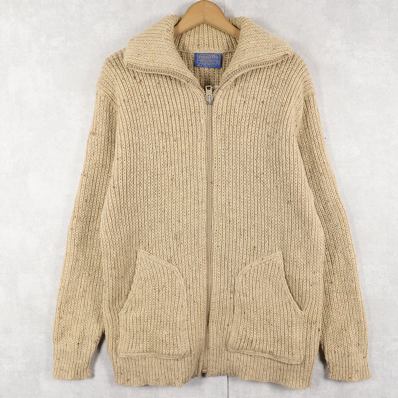 70's PENDLETON USA製 ネップ混 ウールニットジップジャケット L [159883]