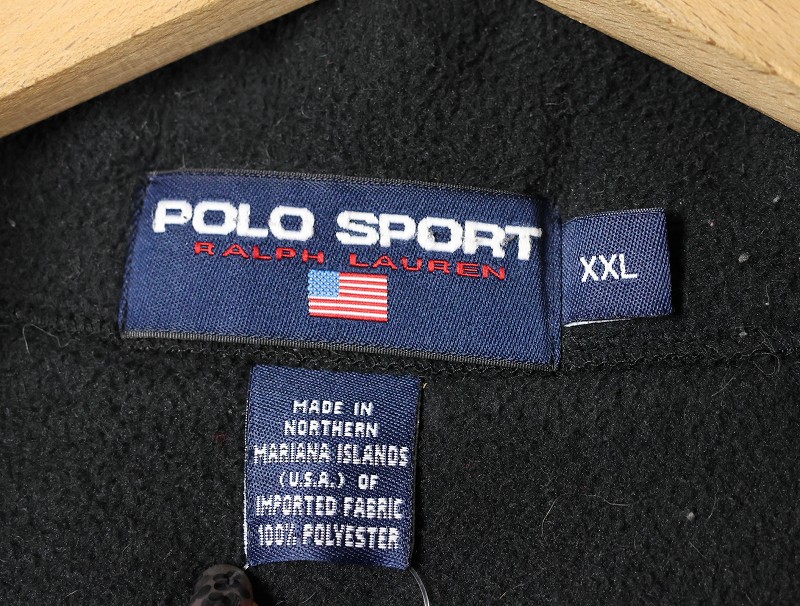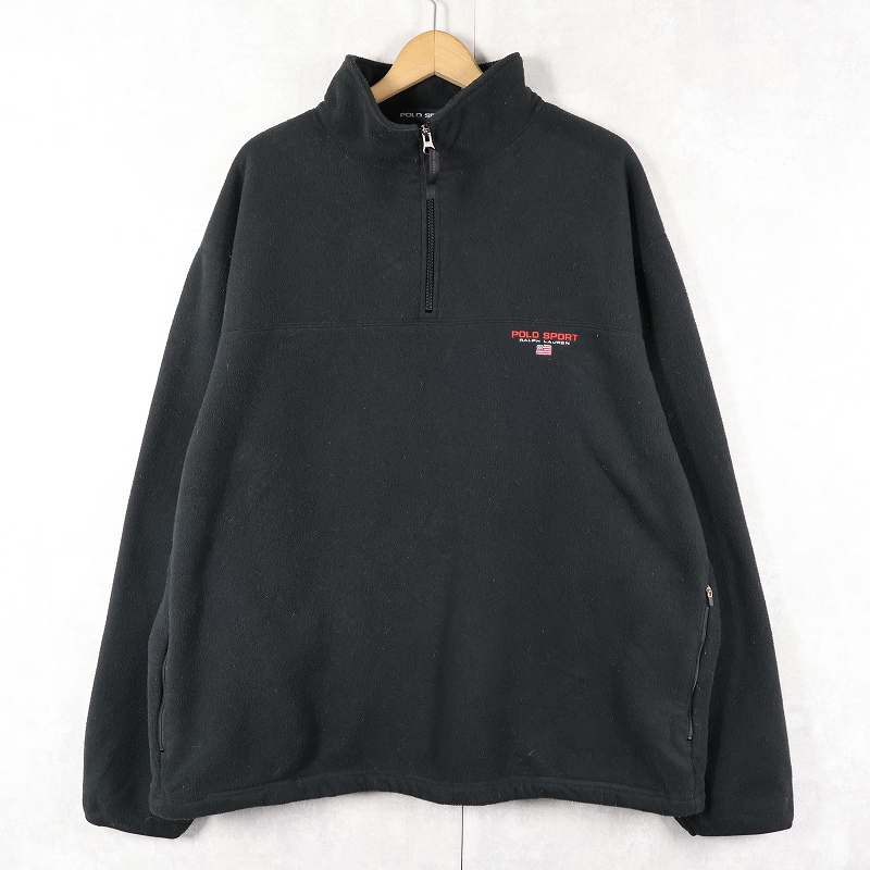 90's POLO SPORT Ralph Lauren ロゴ刺繍 ハーフジップ フリースジャケット BLACK XXL [159931]
