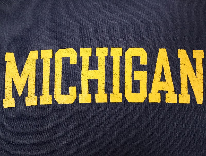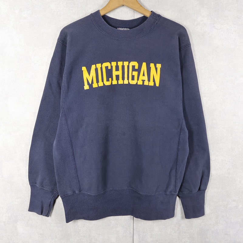 80's Champion REVERSE WEAVE USA製 "MICHIGAN" プリントスウェット NAVY M [159942]