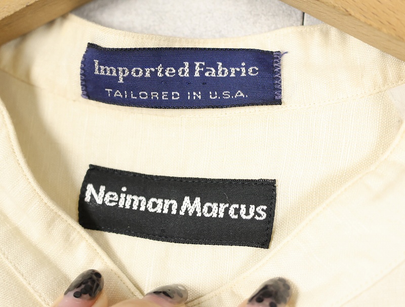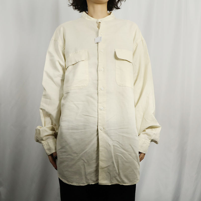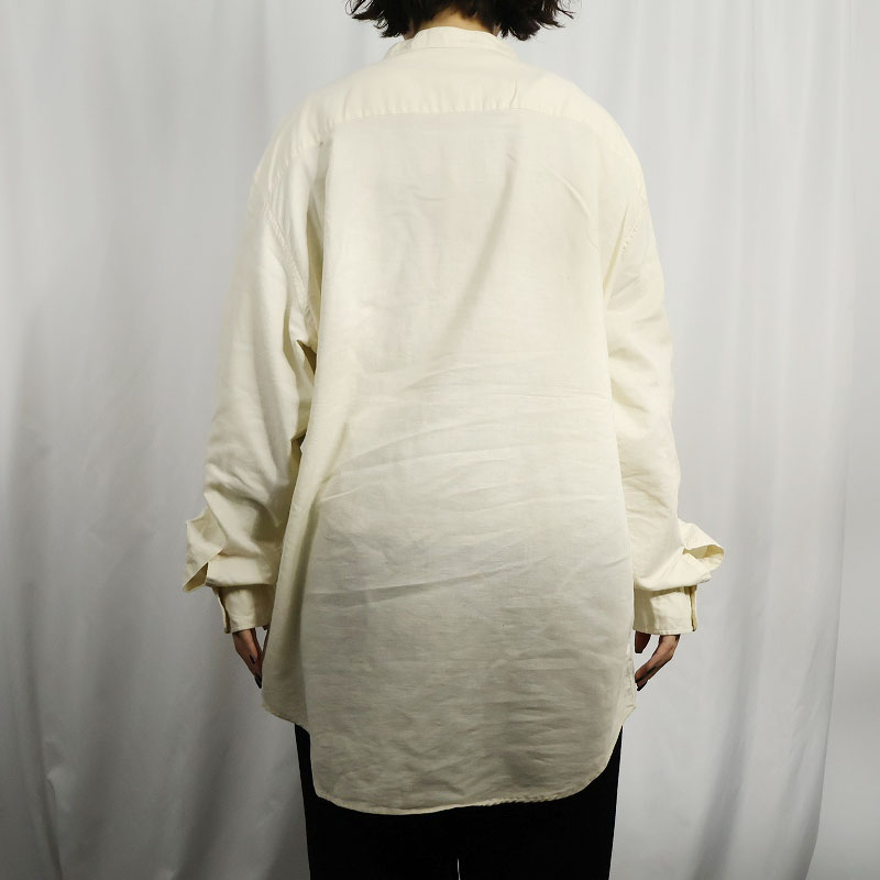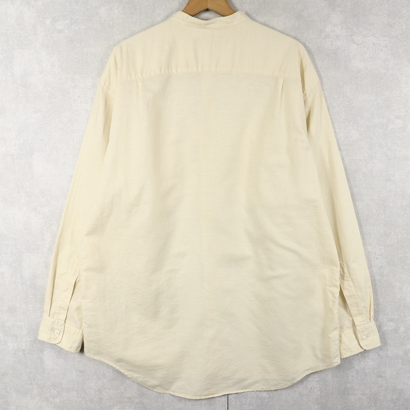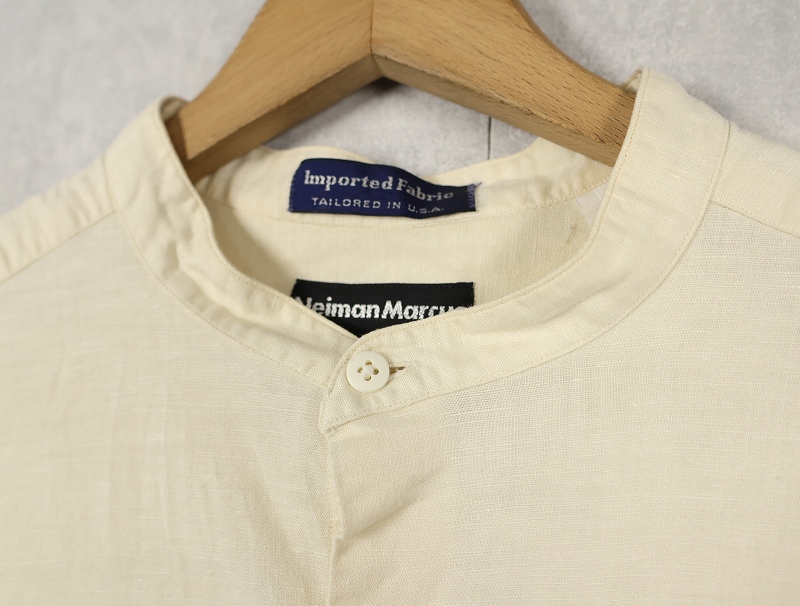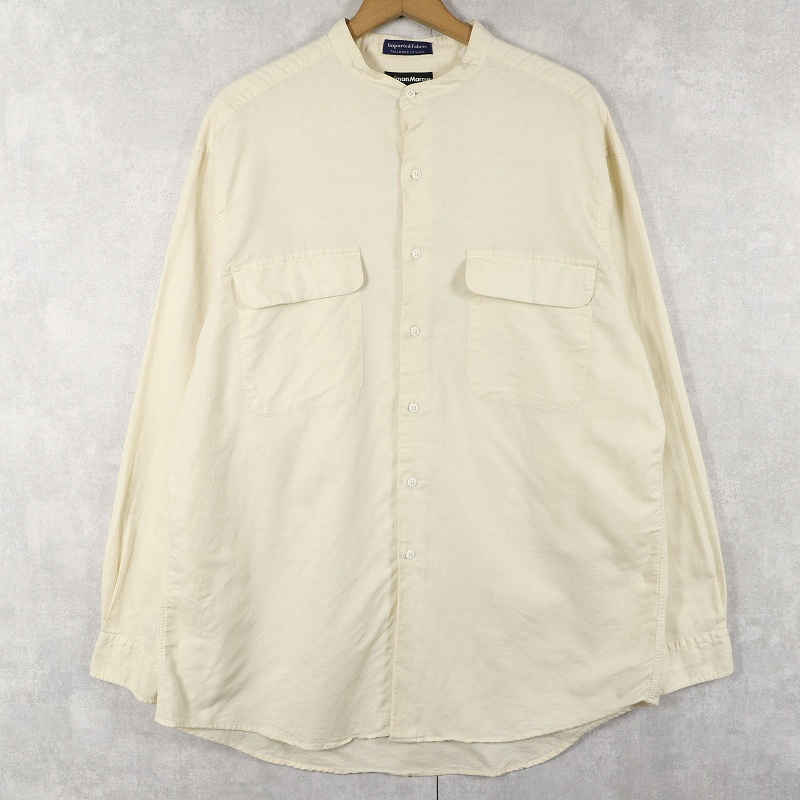 90's Neiman Marcus USA製 リネン×コットン バンドカラーシャツ XL [159951]