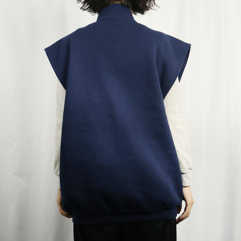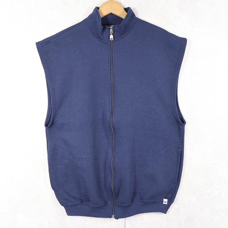 90's RUSSELL ATHLETIC USA製 スウェットジップベスト NAVY XL [159954]