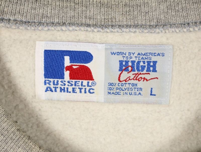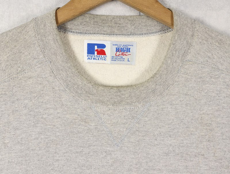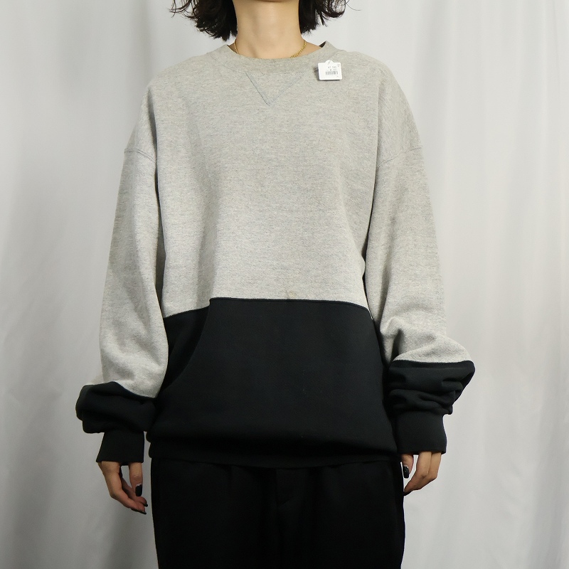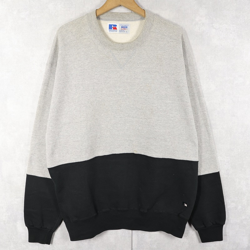 90's RUSSELL ATHLETIC USA製 "HIGH COTTON" 前V 2トーン 無地スウェット L [159957]
