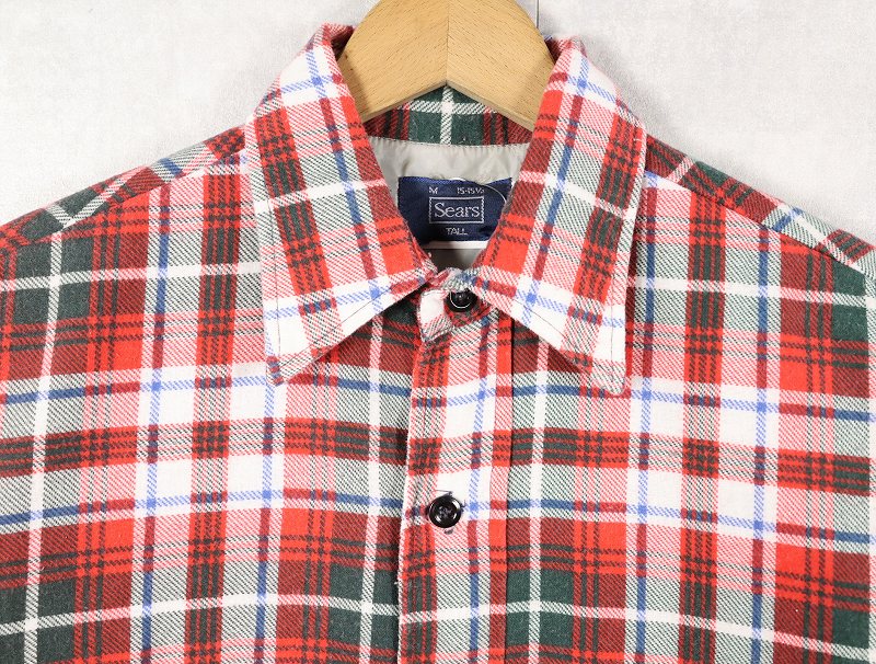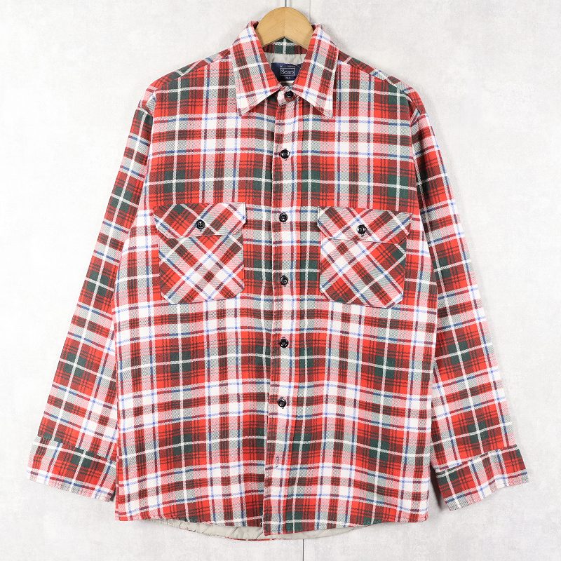 70's Sears チェック柄 キルティングライナー プリントネルシャツ M [159963]