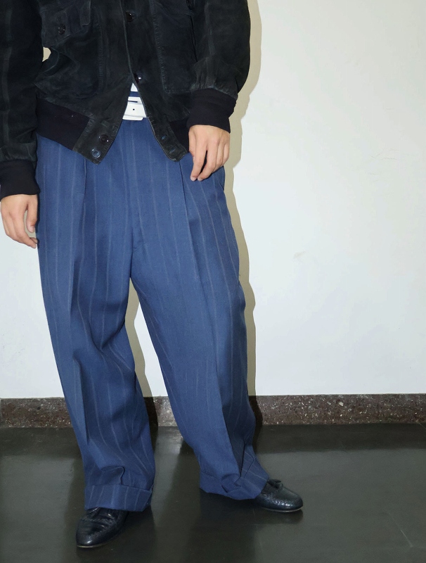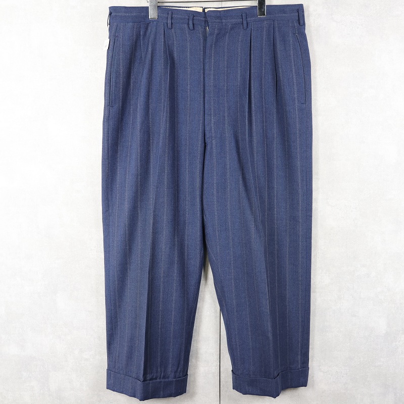 50's ストライプ柄 2タック ウールギャバジンスラックス W38 [159992]