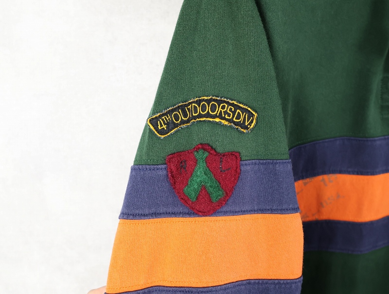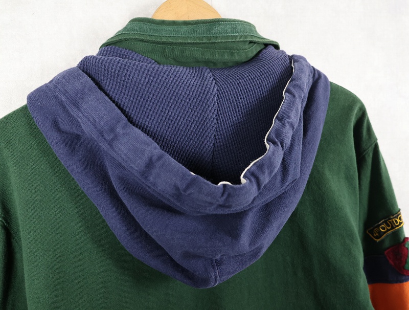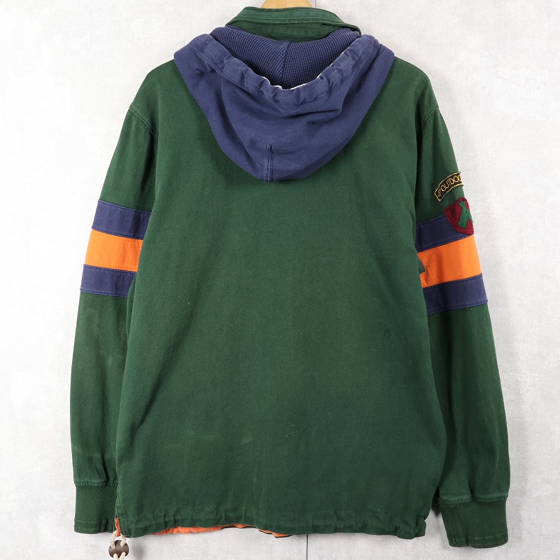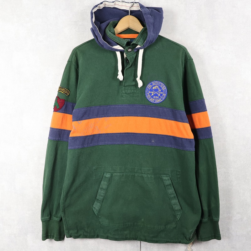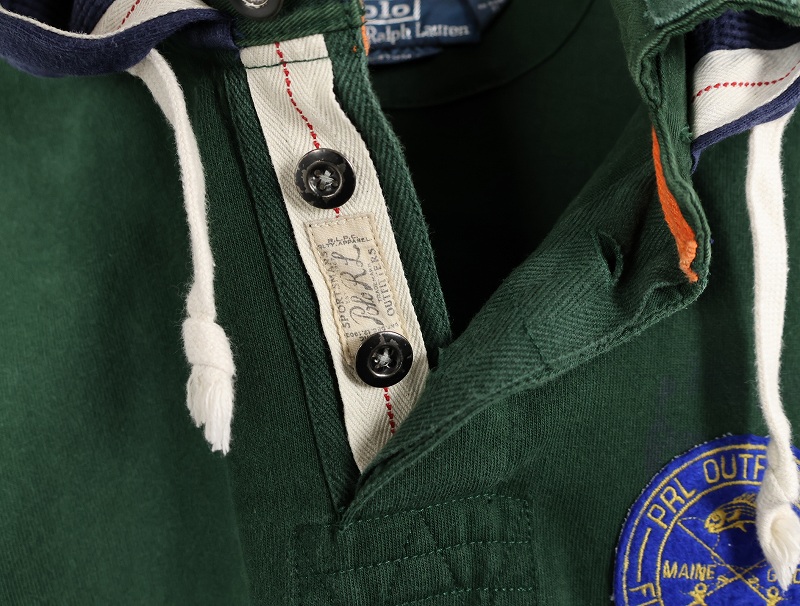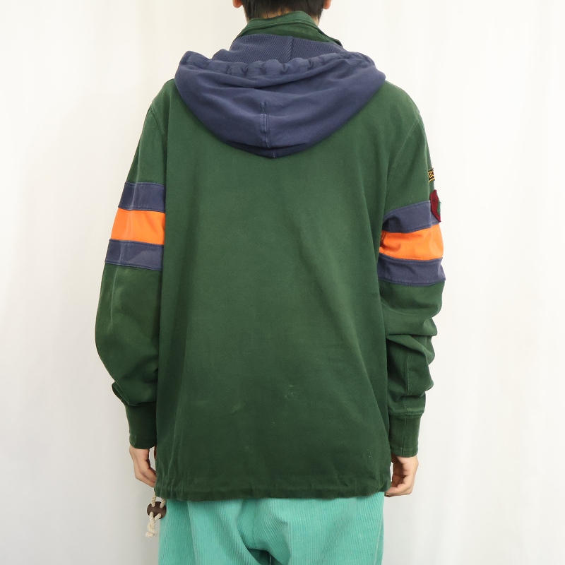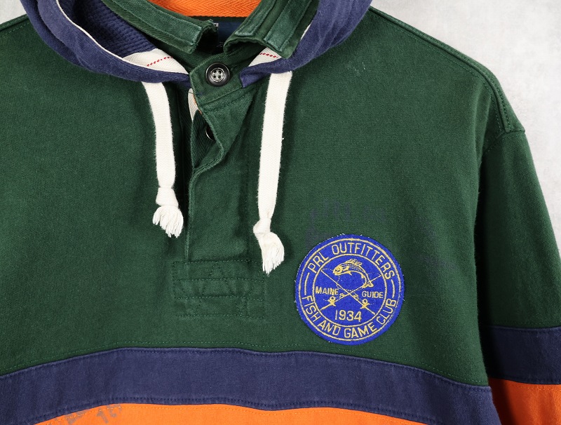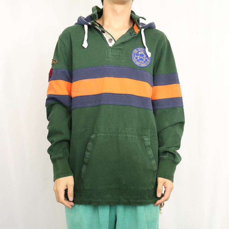 POLO Ralph Lauren "CUSTOM FIT" フード&ワッペン付き レイヤードデザイン ラガーシャツ L [160017]