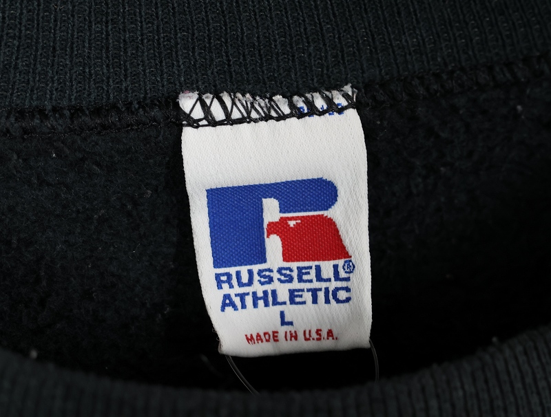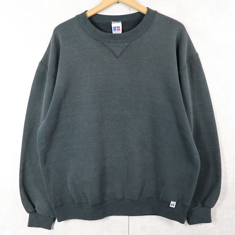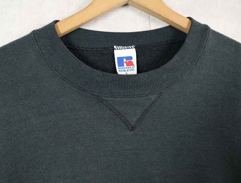 90's RUSSELL ATHLETIC USA製 前V 無地スウェット BLACK L [160020]