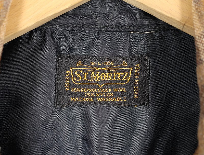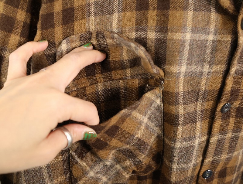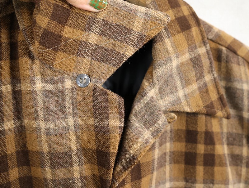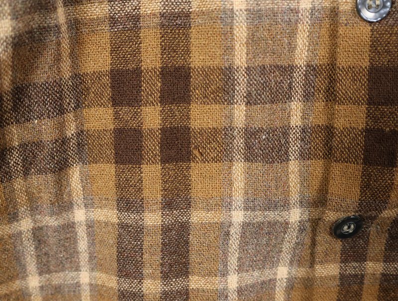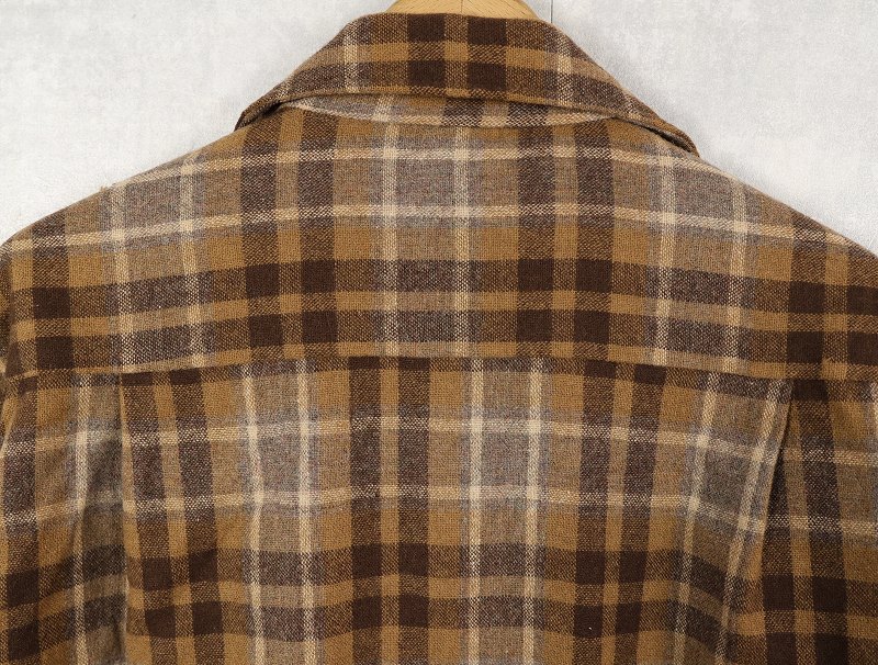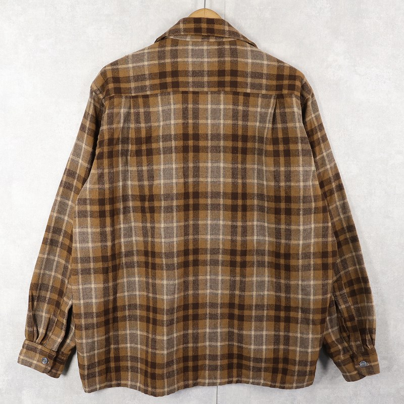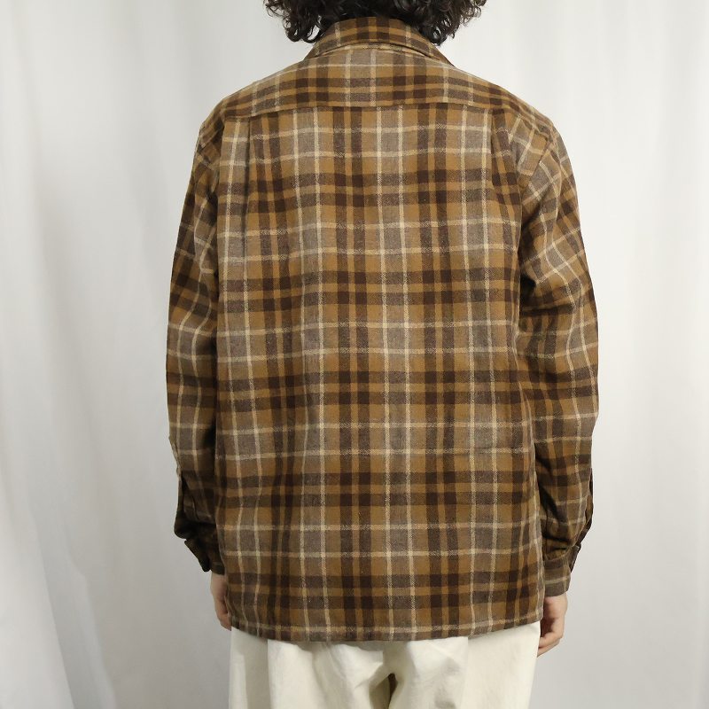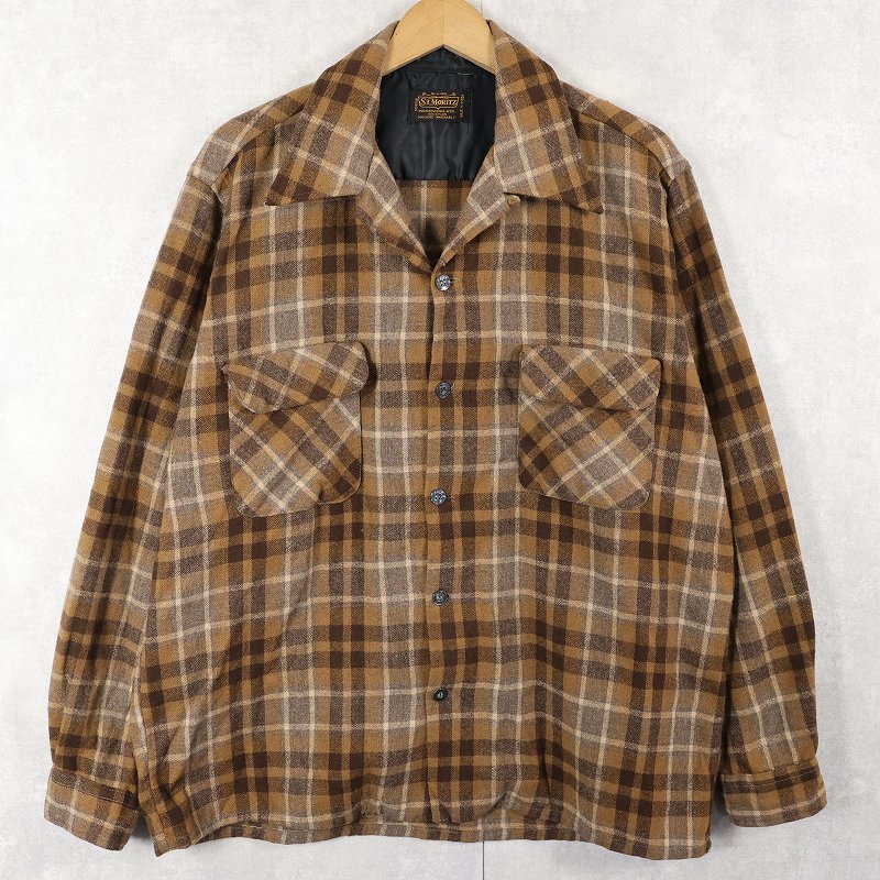 60〜70's St Moritz チェック柄 オープンカラーウールシャツ L [160078]