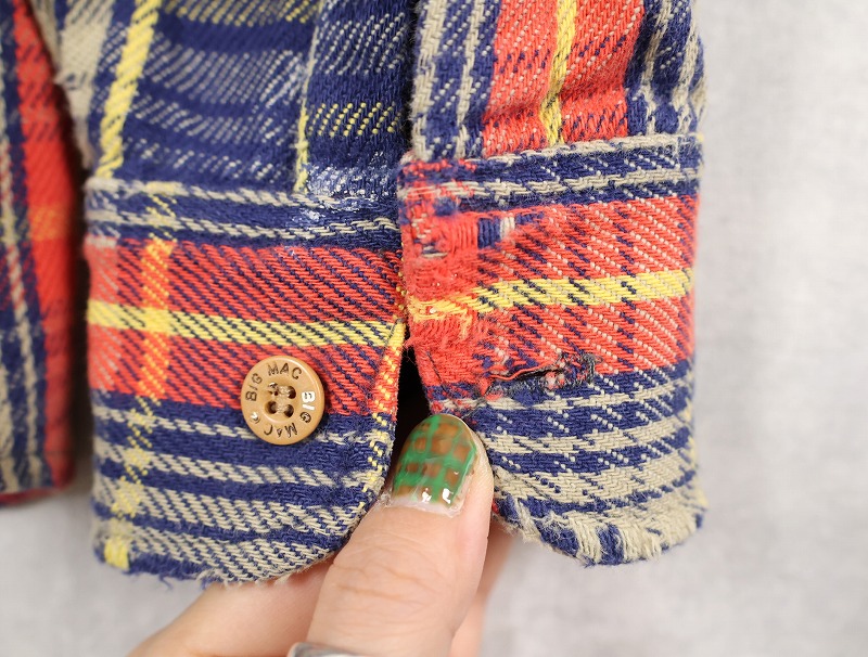 80's BIG MAC USA製 チェック柄 ヘビーネルシャツ M [160083]