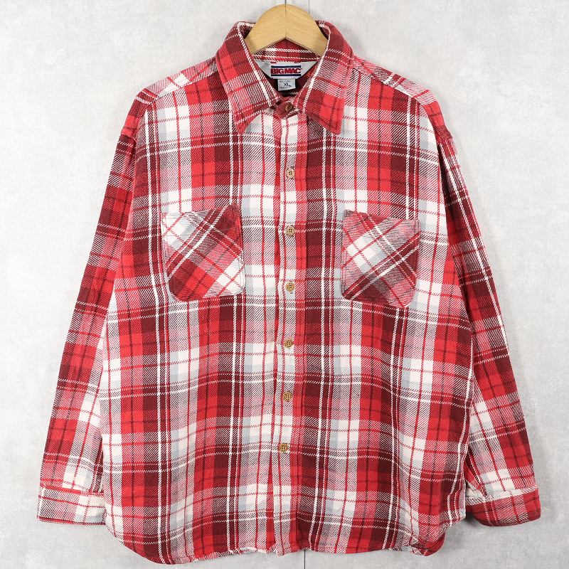 80's BIG MAC USA製 チェック柄 ヘビーネルシャツ XL [160084]