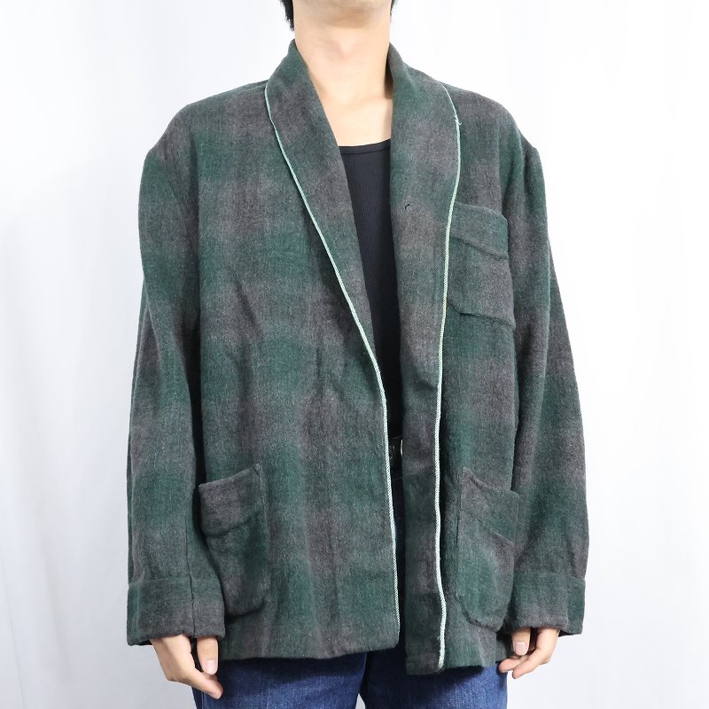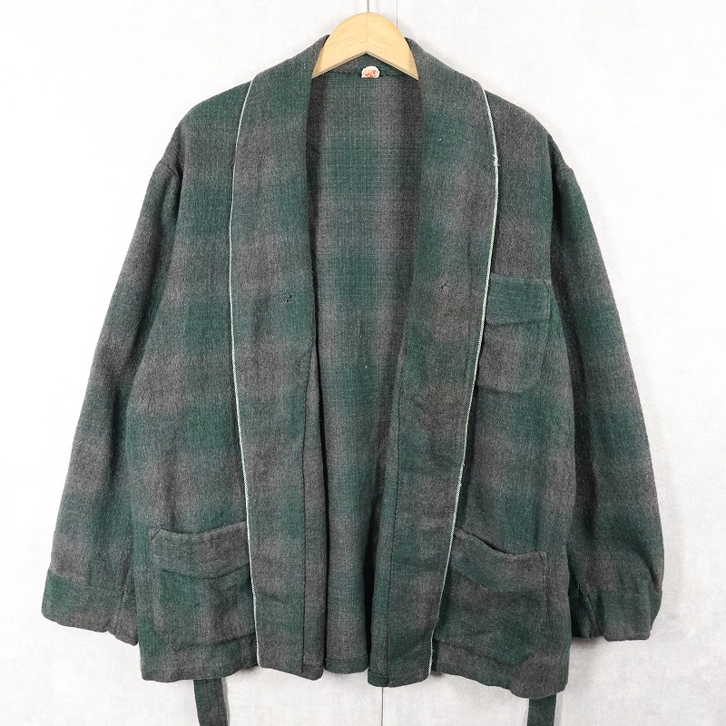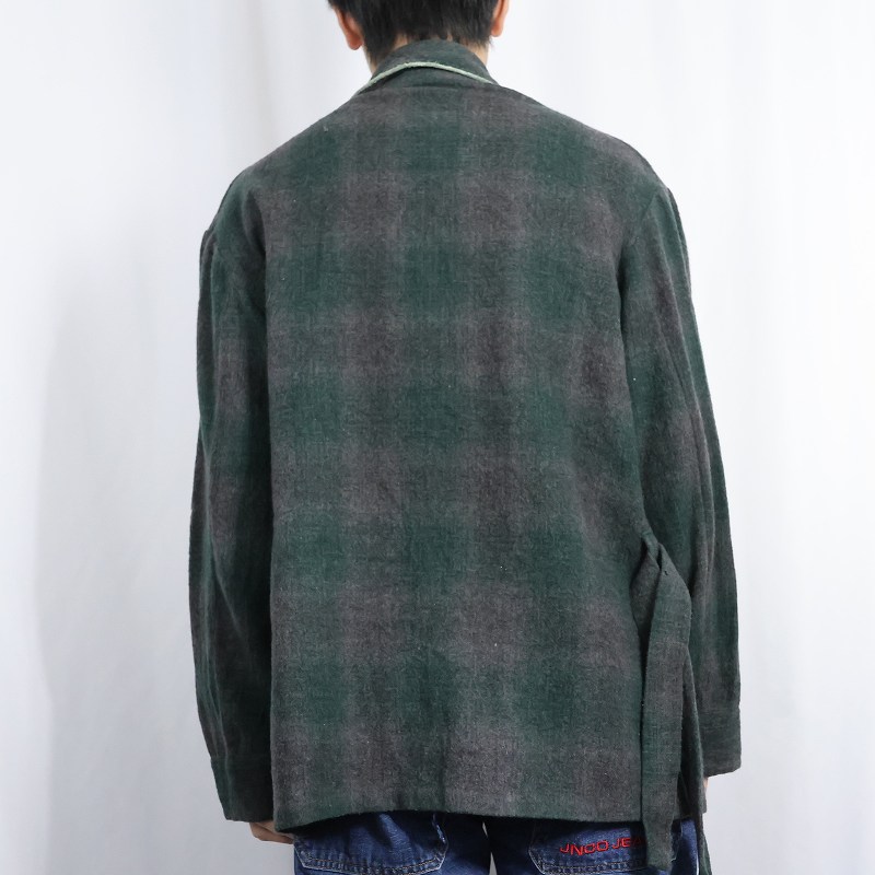 〜70's GEVAH オンブレーチェック柄 ウールガウン [160103]