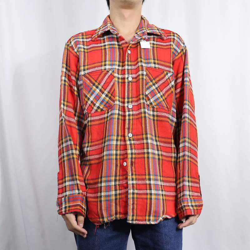 70's JCPenney BIG MAC チェック柄 ヘビーネルシャツ L [160138]