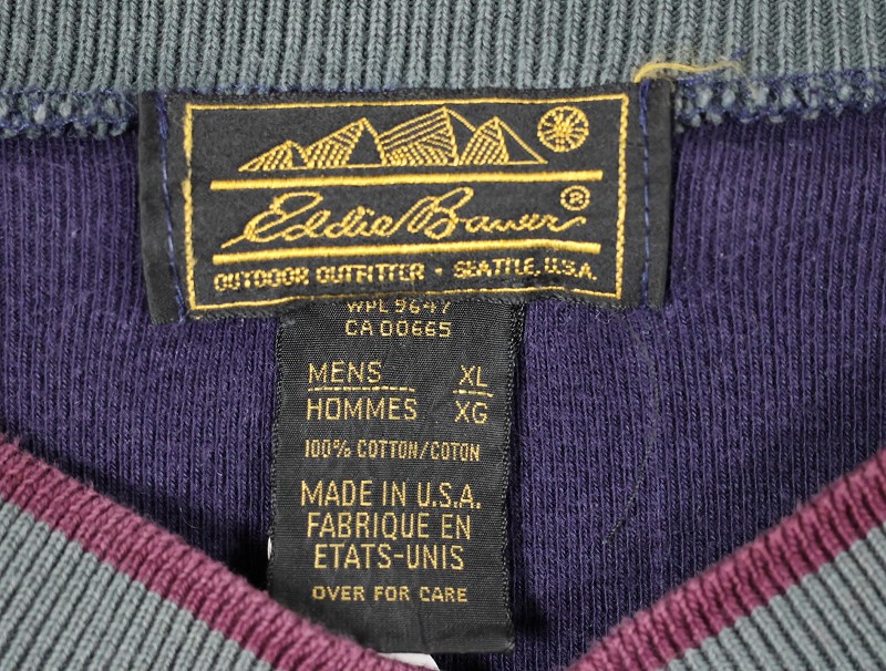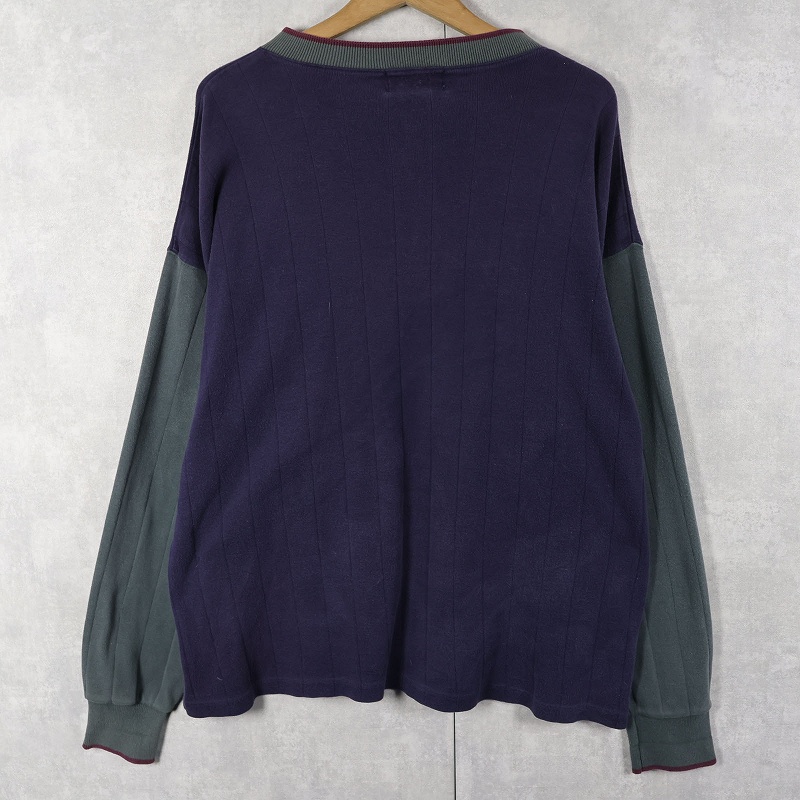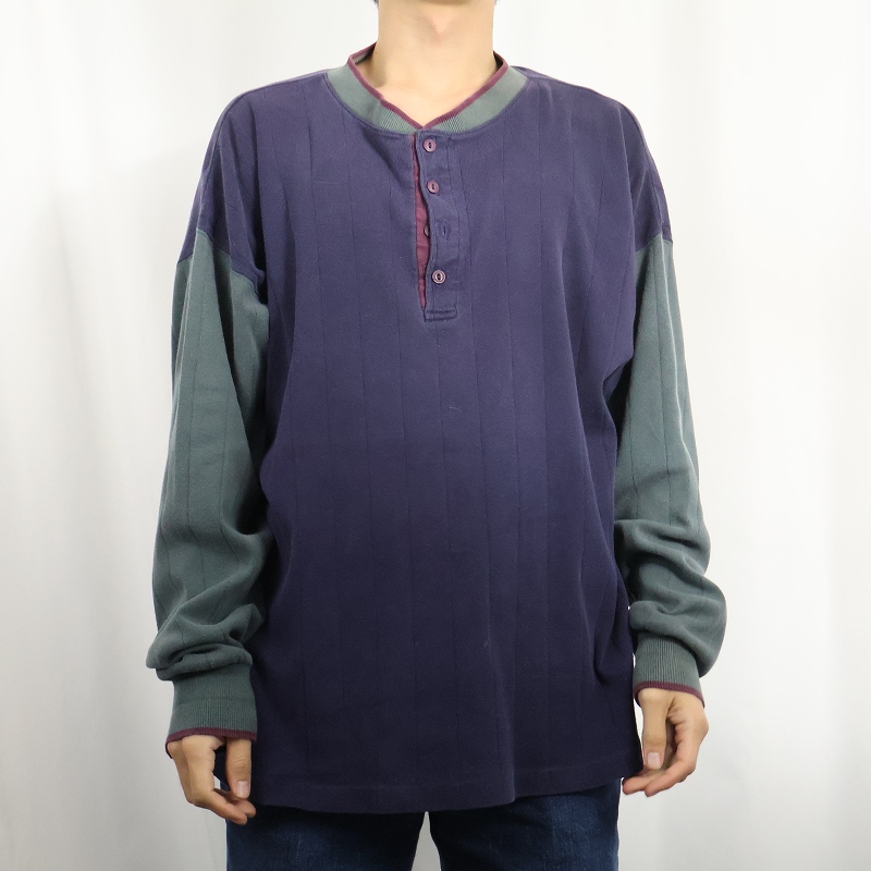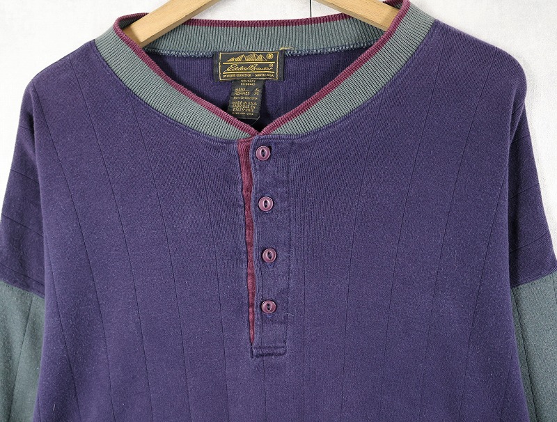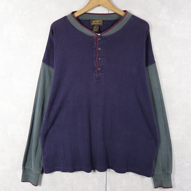 80's Eddie Bauer USA製 切り替えデザイン ヘンリーネックロンT XL [160182]