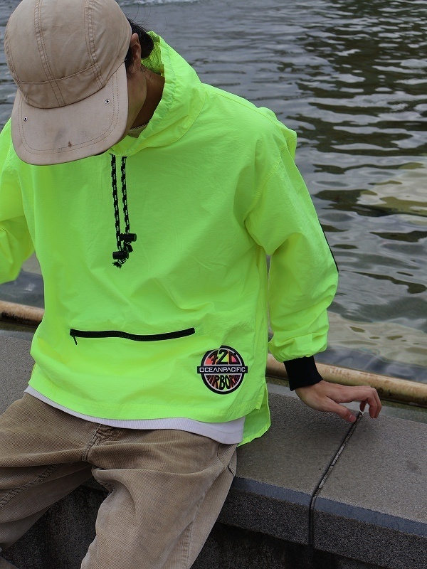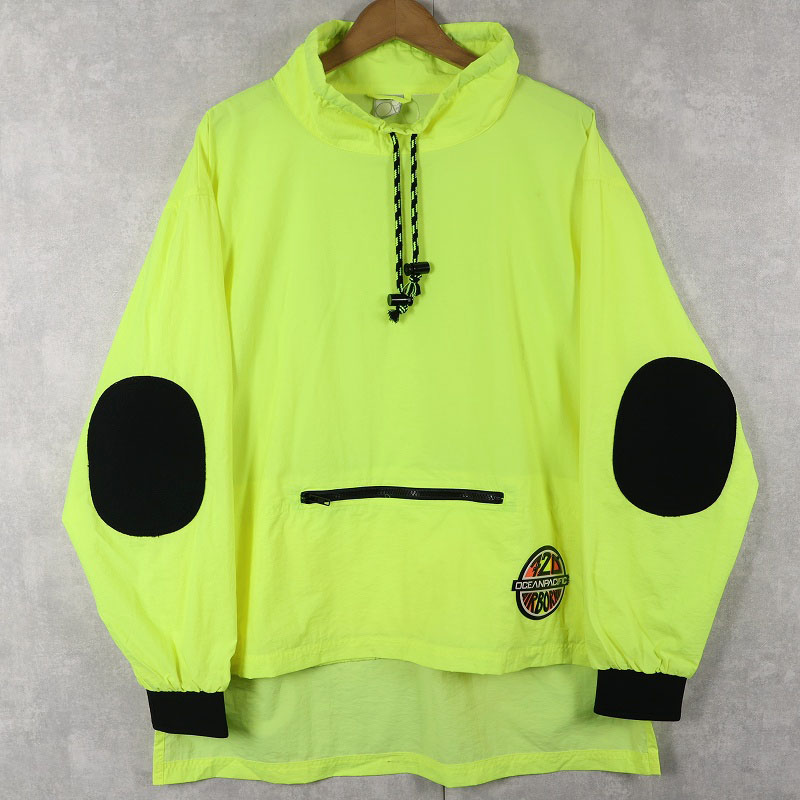 90's Ocean Pacific ネオンカラー エルボーパッチ付き ナイロンプルオーバー [160210]