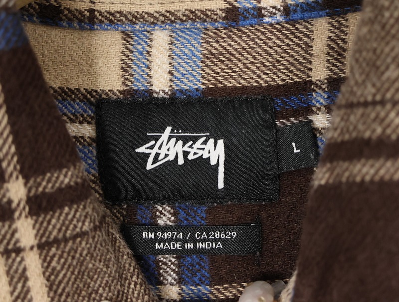 STUSSY チェック柄 ヘビーネルシャツ L [160234]