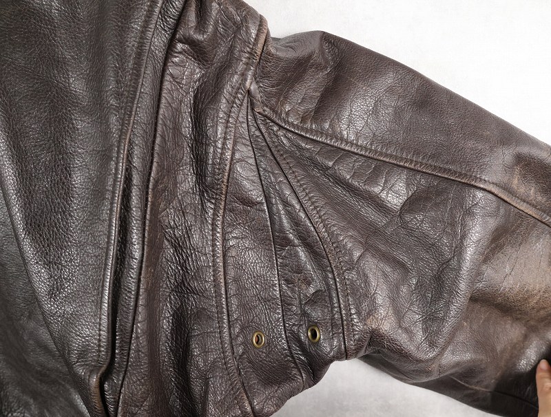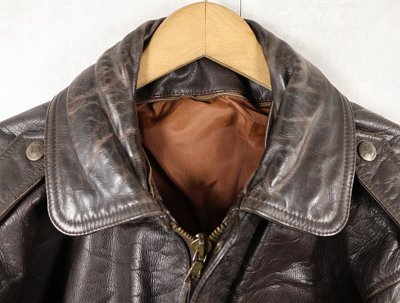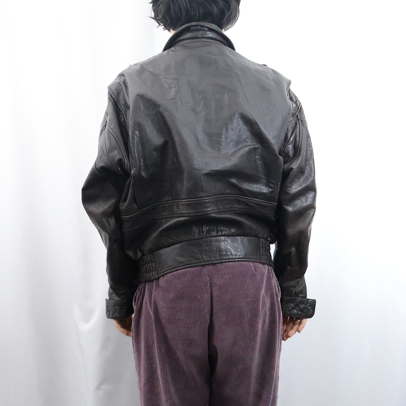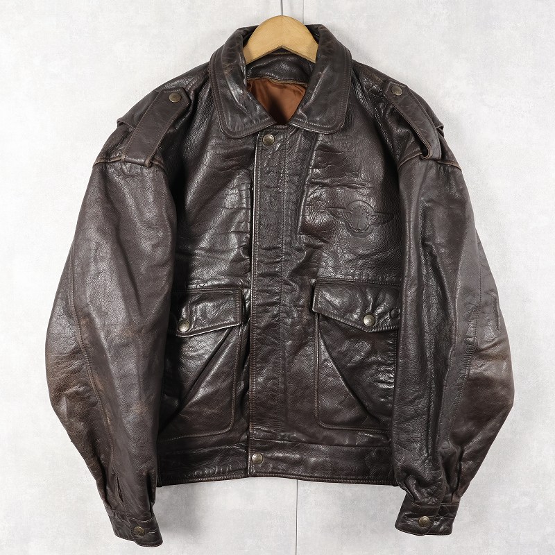 60〜70's Valentino ITALY製 "A-2 TYPE" レザージャケット BROWN size48 [160240]