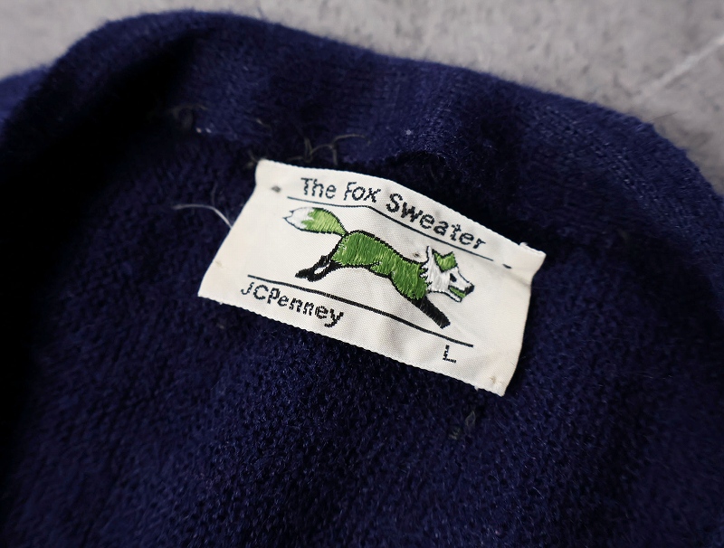 80's The Fox JCPenney アクリルニットカーディガン NAVY L [160247]