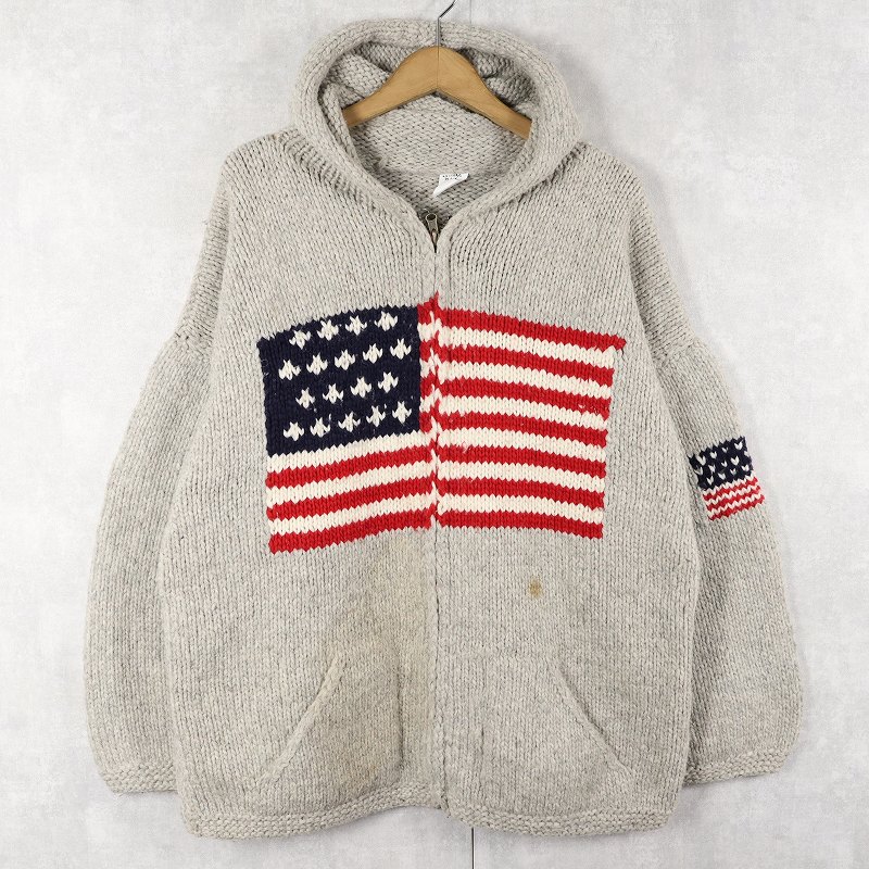 KNITTING PLACE ECUADOR製 星条旗柄 ニットジップパーカー [160258]
