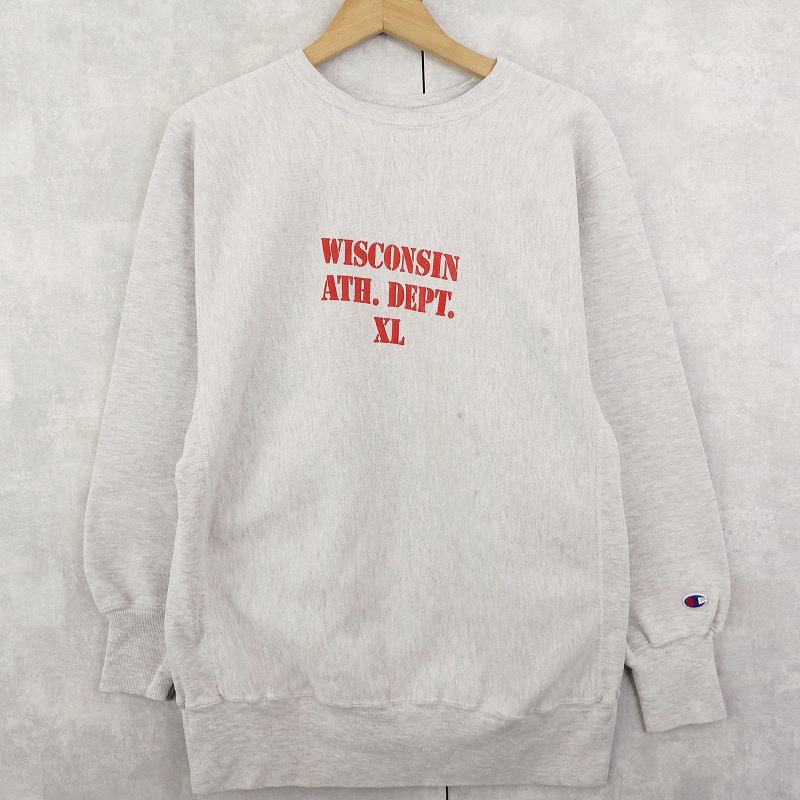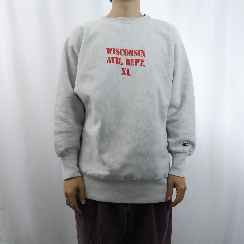 90's Champion REVERSE WEAVE USA製 "WISCONSIN ATH. DEPT." プリントスウェット XL [160280]