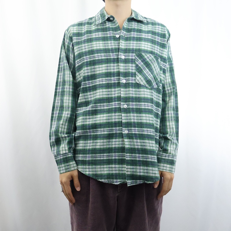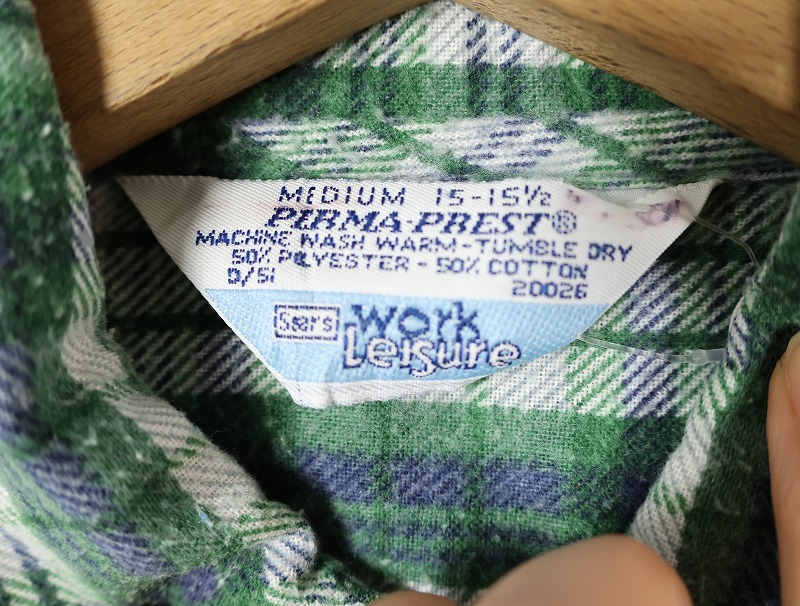 70's Sears WORK LEISURE チェック柄 ライトネルシャツ M [160282]