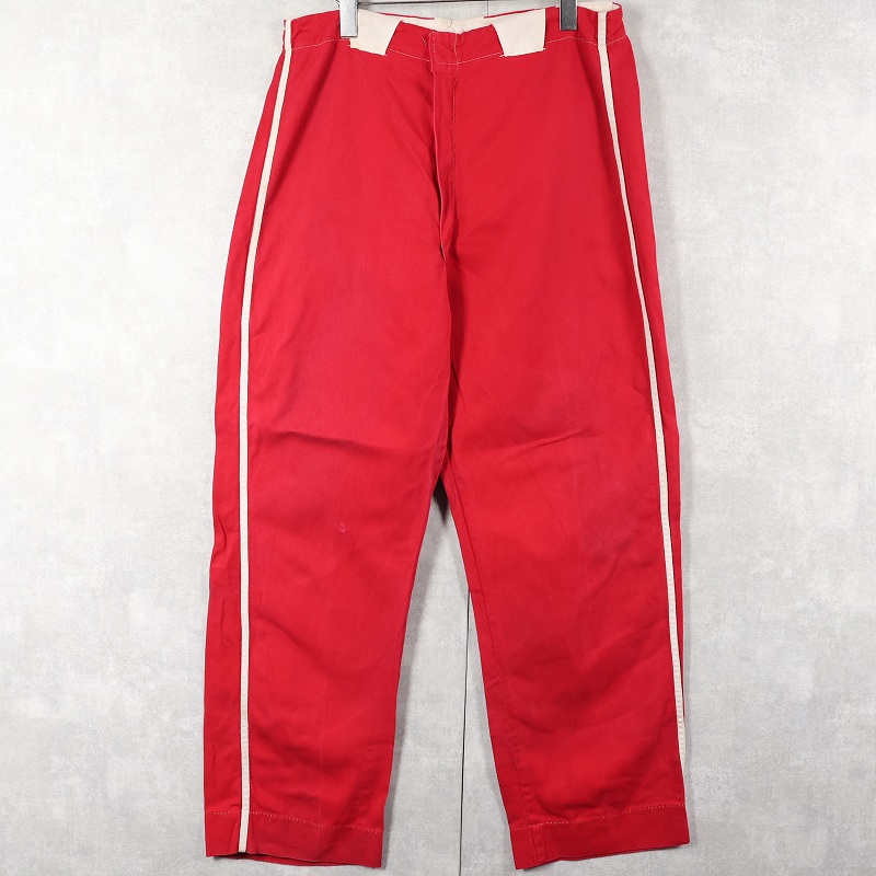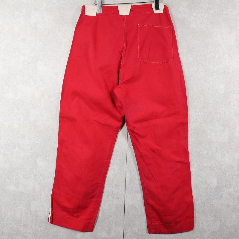 40〜50's サイドライン 猫目ボタン コットンベースボールパンツ W33 [160301]