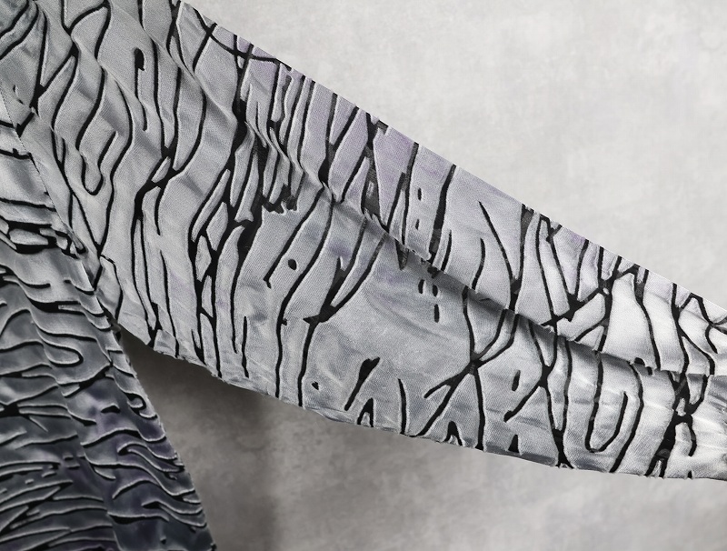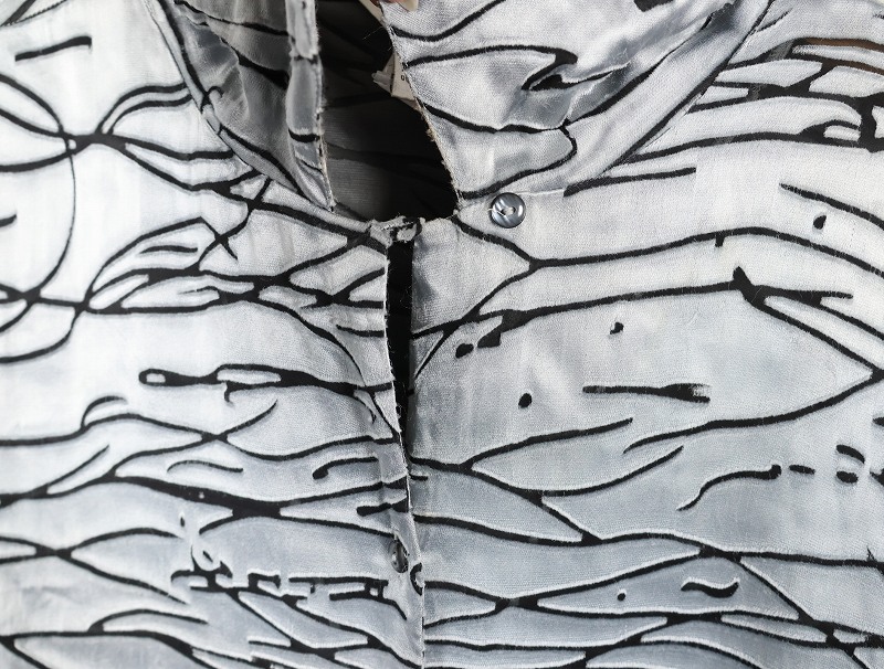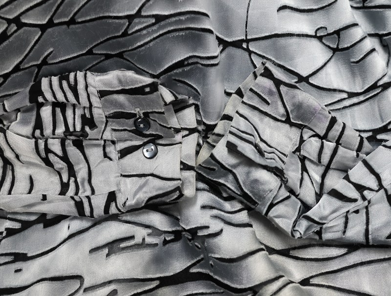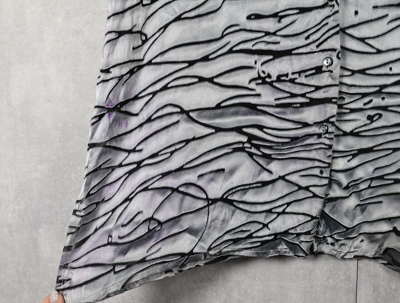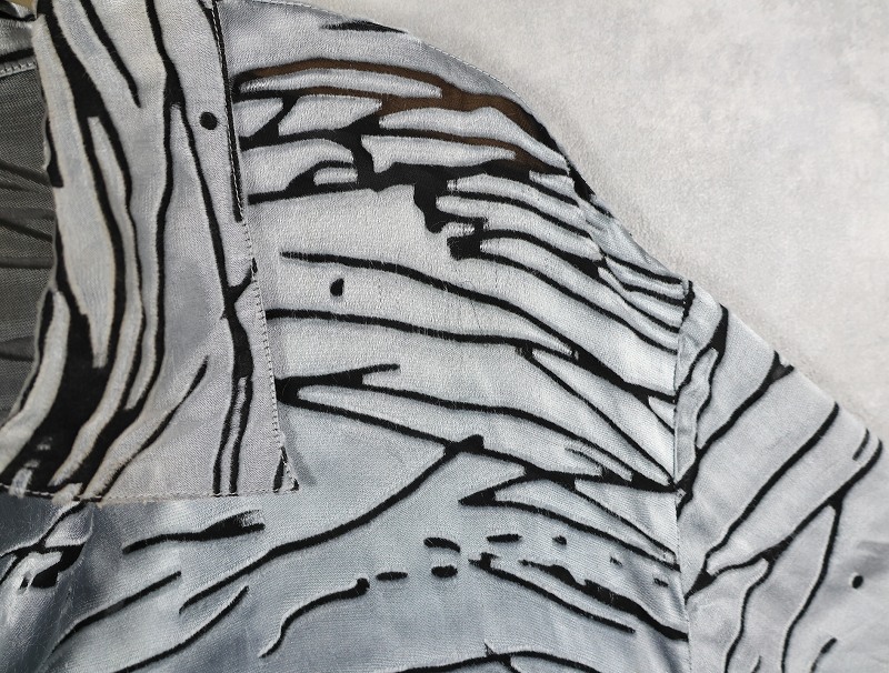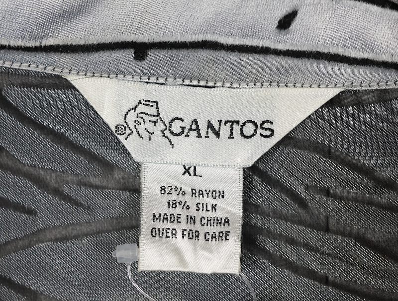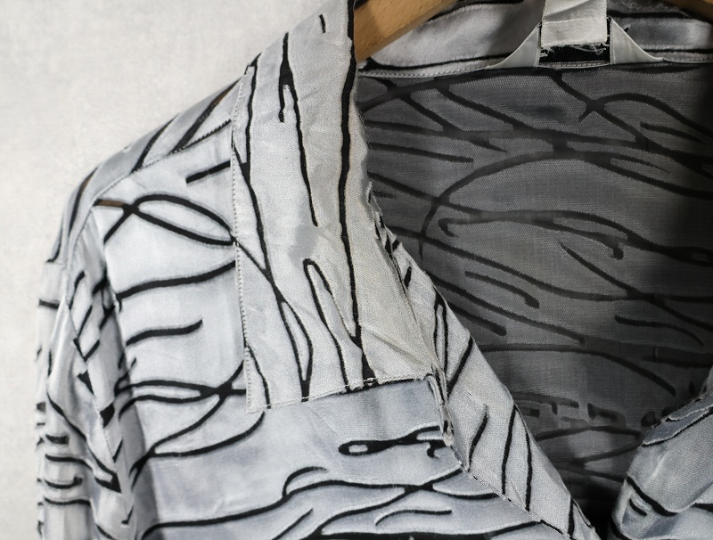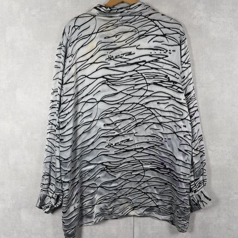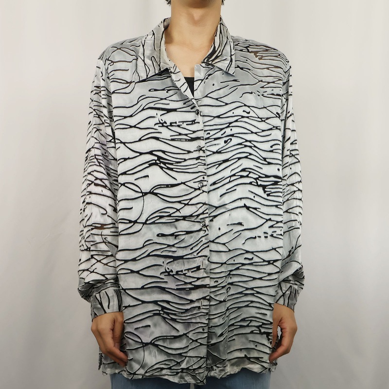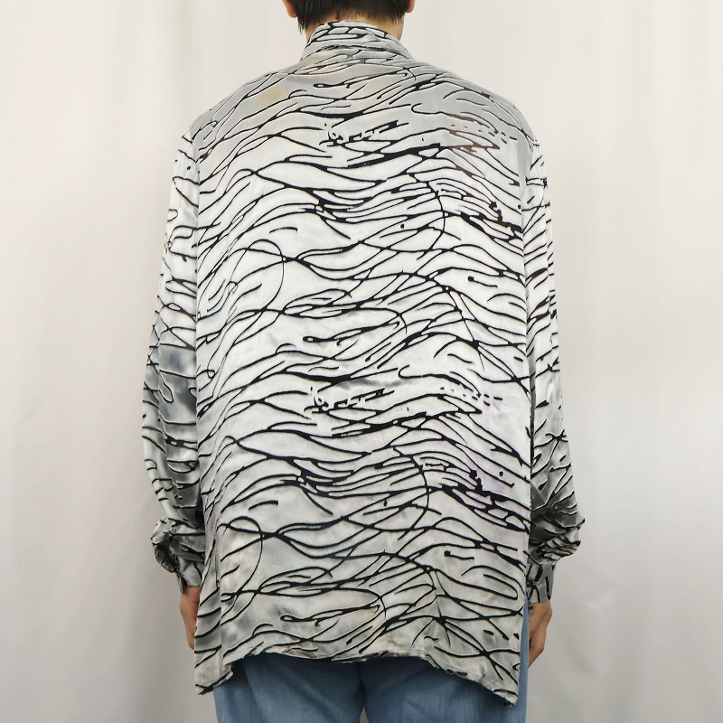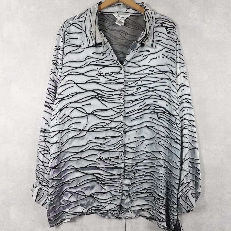 GANTOS 総柄 レーヨン×シルク シースルー オープンカラーシャツ XL [160303]