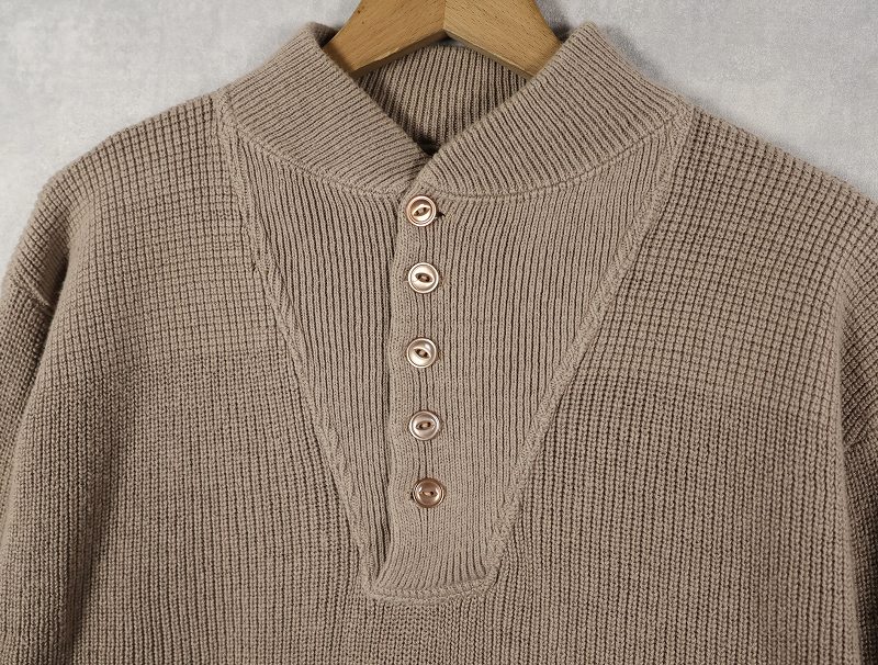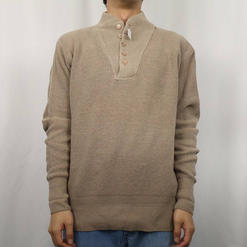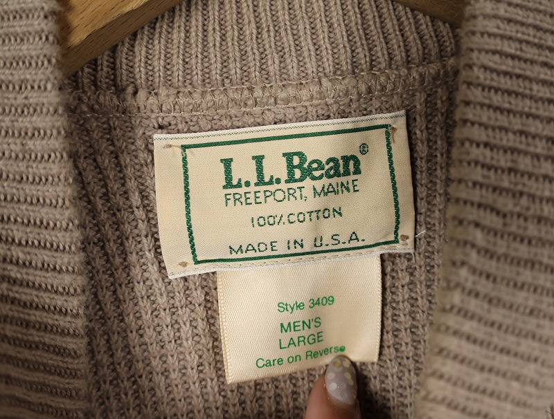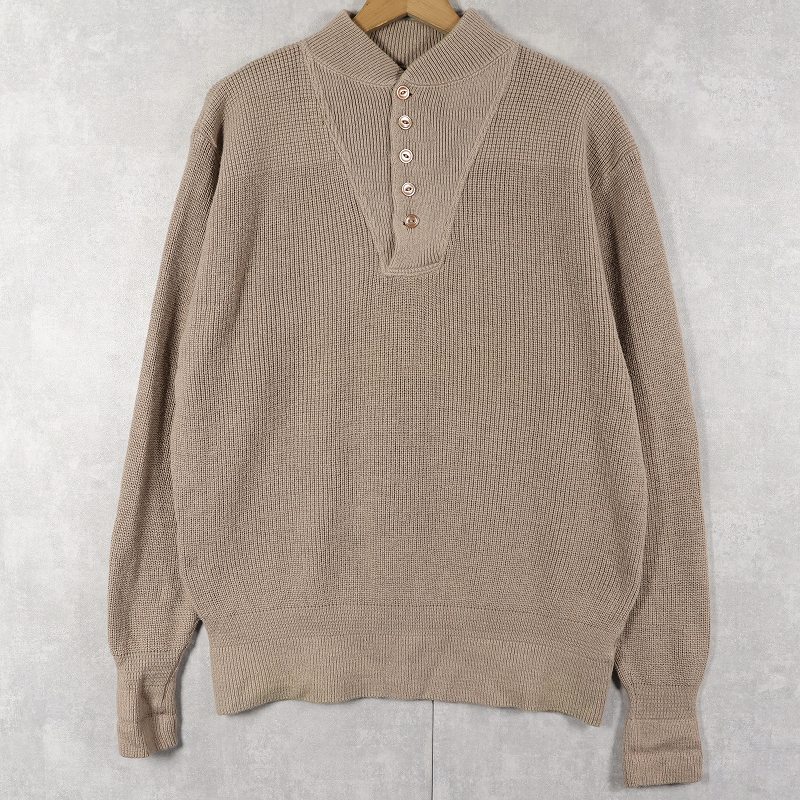 80〜90's L.L.Bean USA製 猫目ボタン ヘンリーネック コットンニットセーター L [160316]