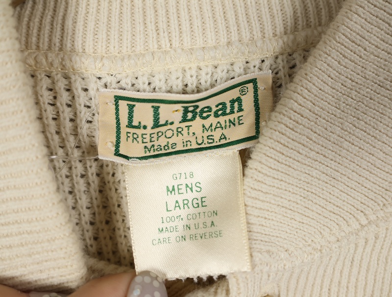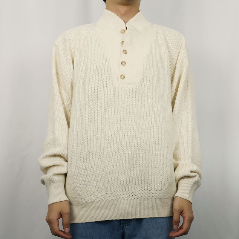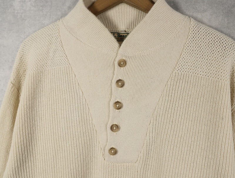 80〜90's L.L.Bean USA製 ヘンリーネック コットンニットセーター L [160318]