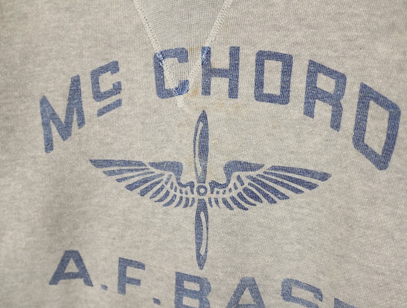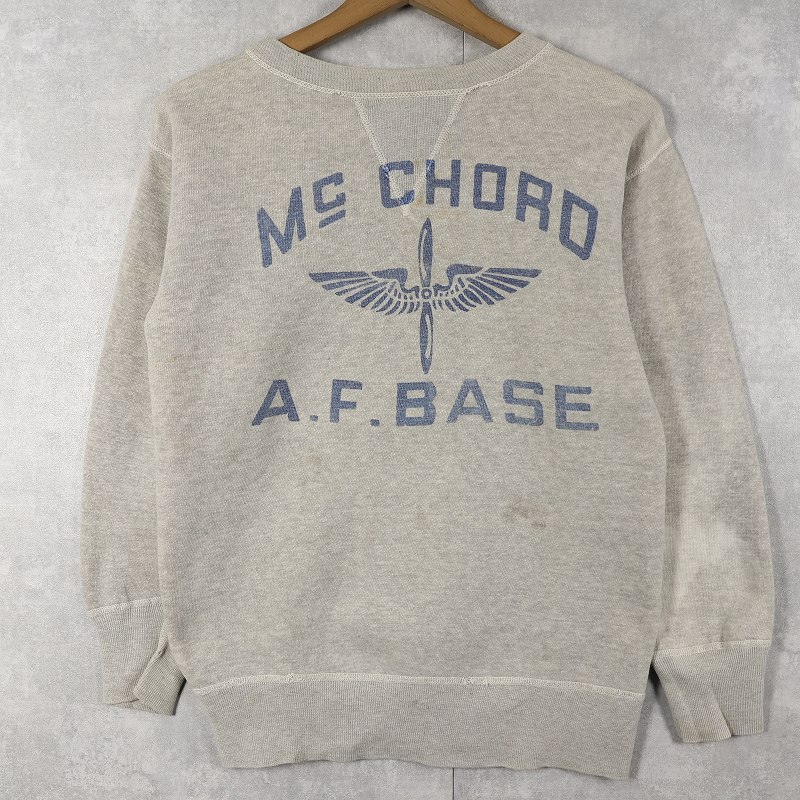 40〜50's WINSTON "McCHORD A.F.BASE" 染み込みプリント 前Vスウェット S [160319]