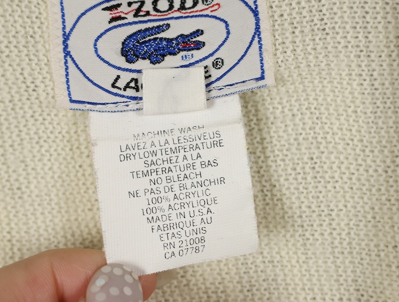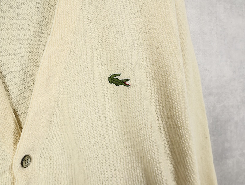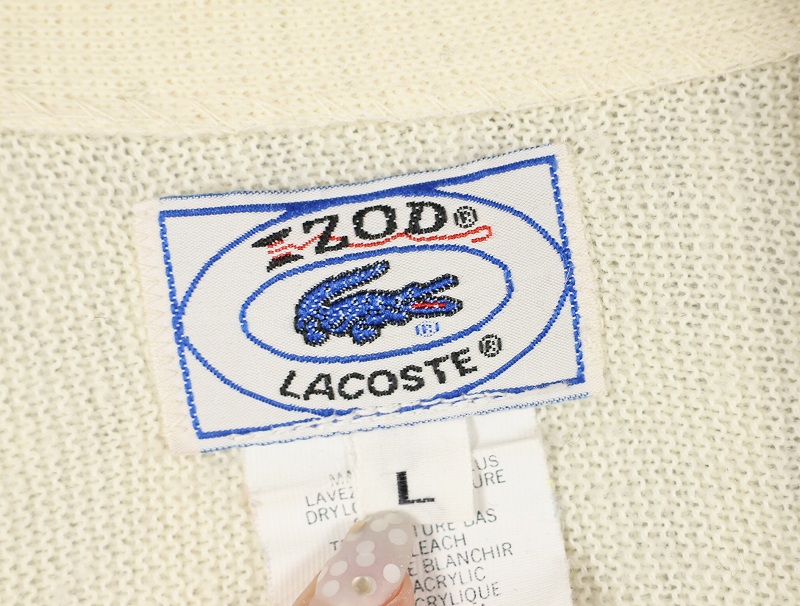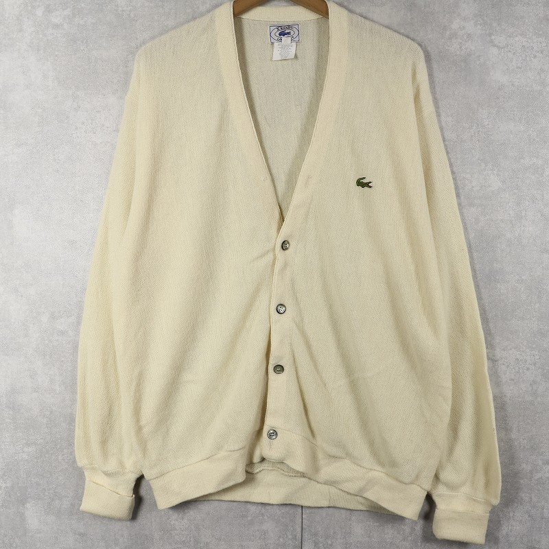 80's IZOD LACOSTE USA製 ロゴ刺繍 アクリルニットカーディガン L [160324]