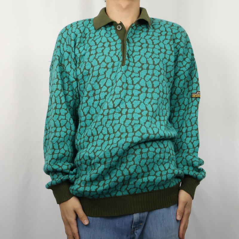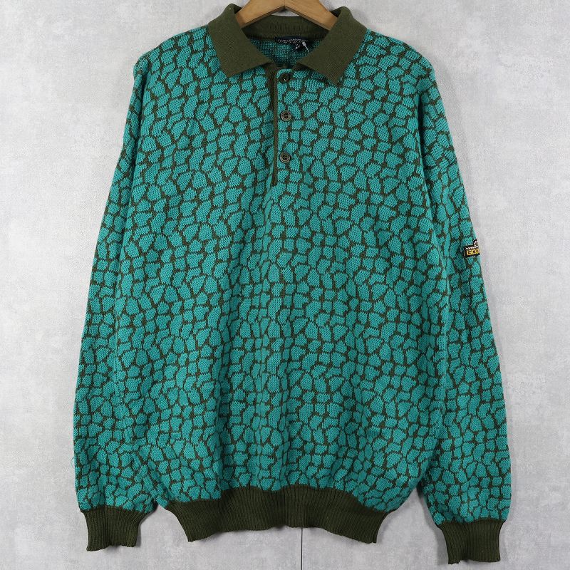 GOMENA ITALY製 総柄ニットポロシャツ 52 [160340]