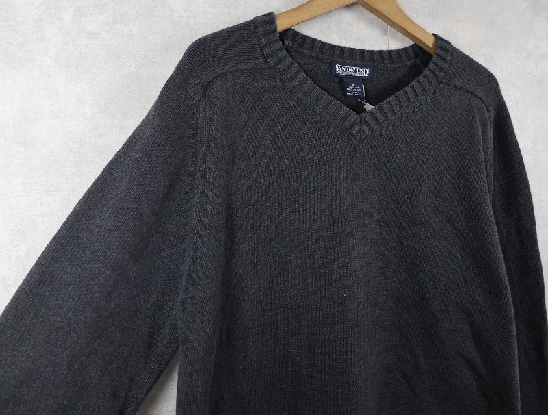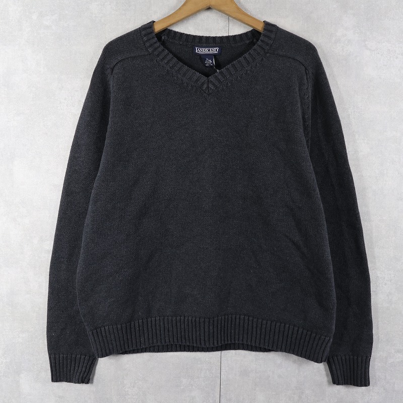 LANDS' END Vネック コットンニットセーター XL [160371]