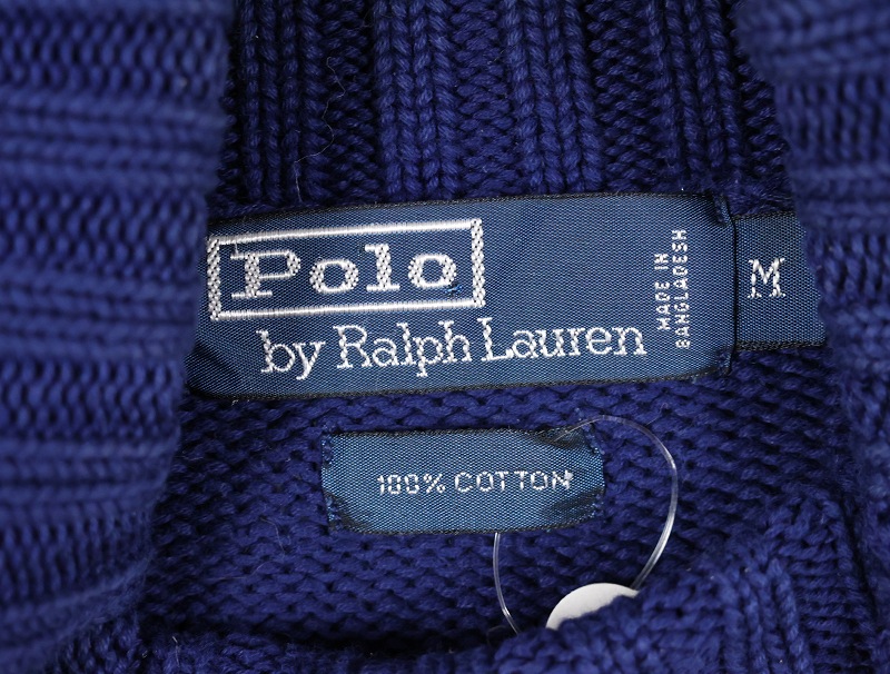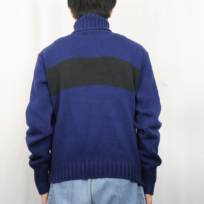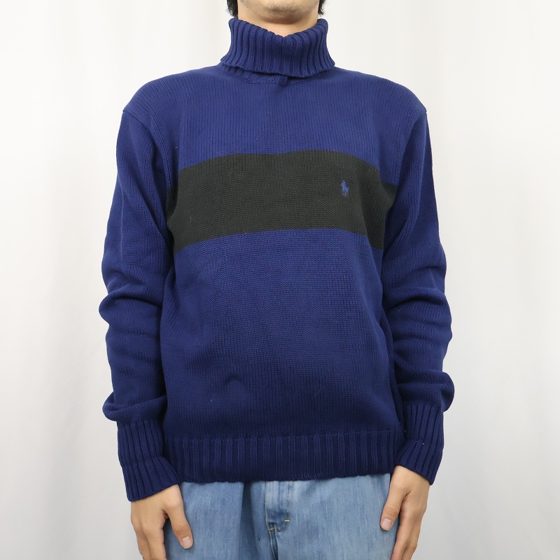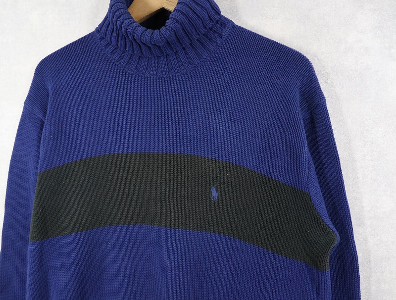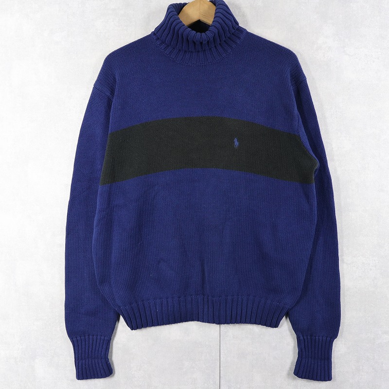 POLO Ralph Lauren ロゴ刺繡 タートルネック コットンニットセーター NAVY M [160374]