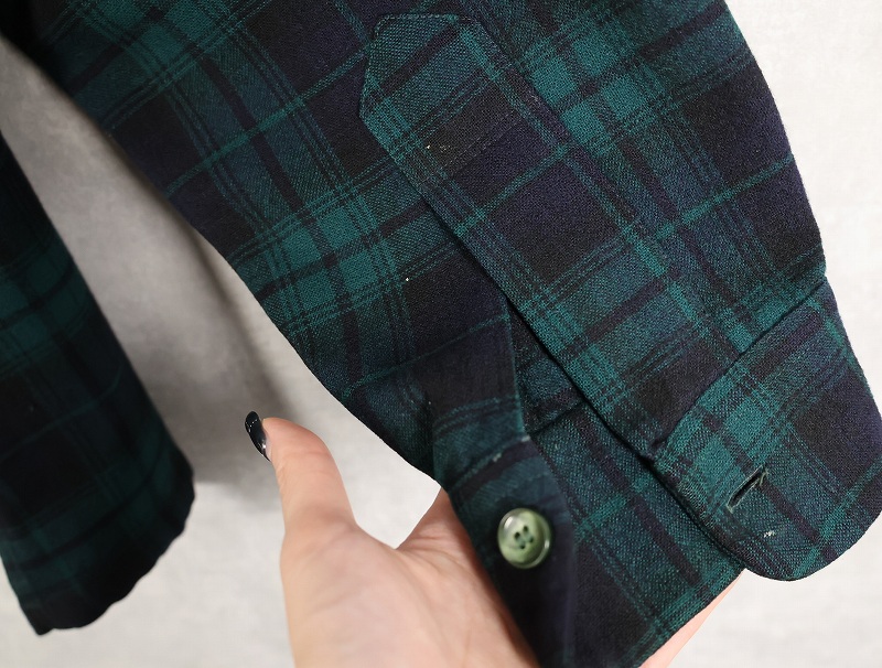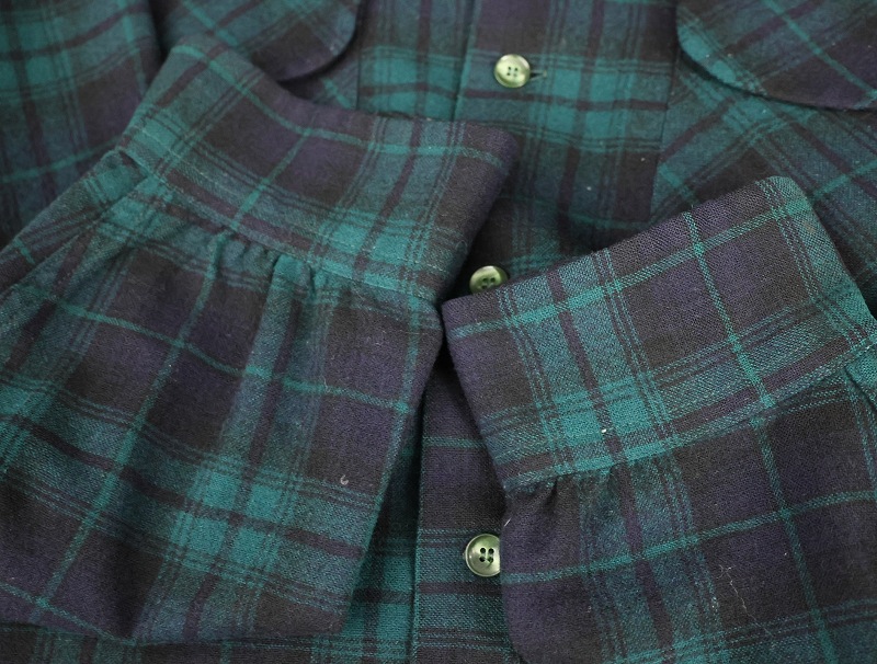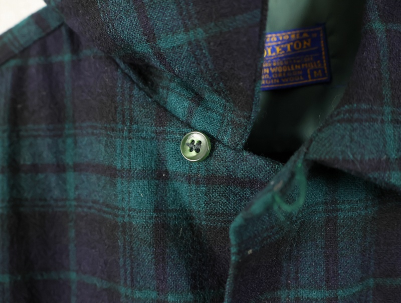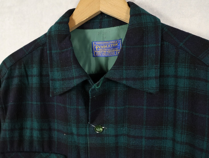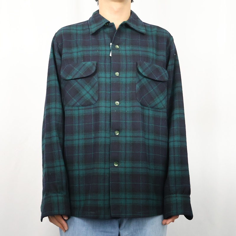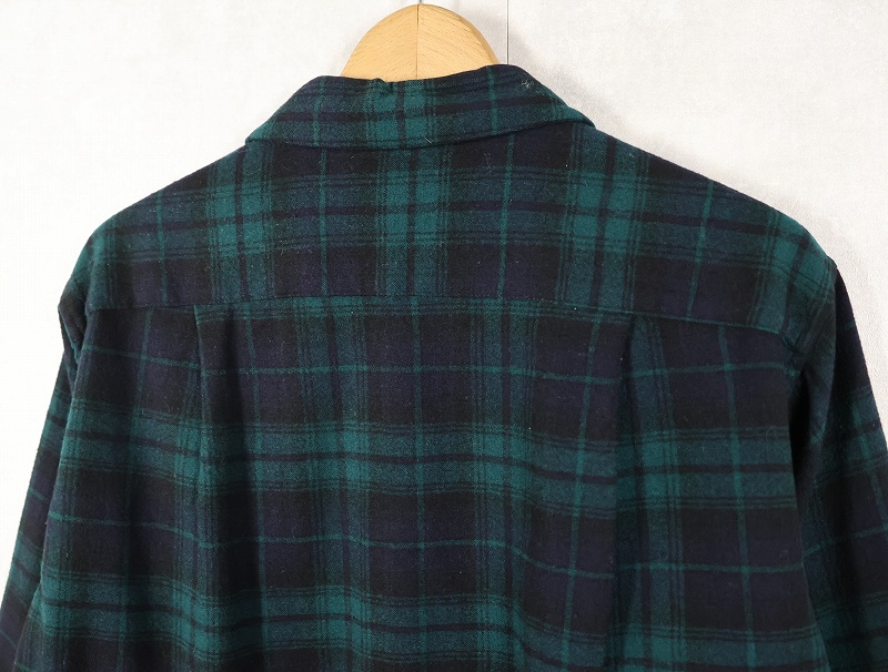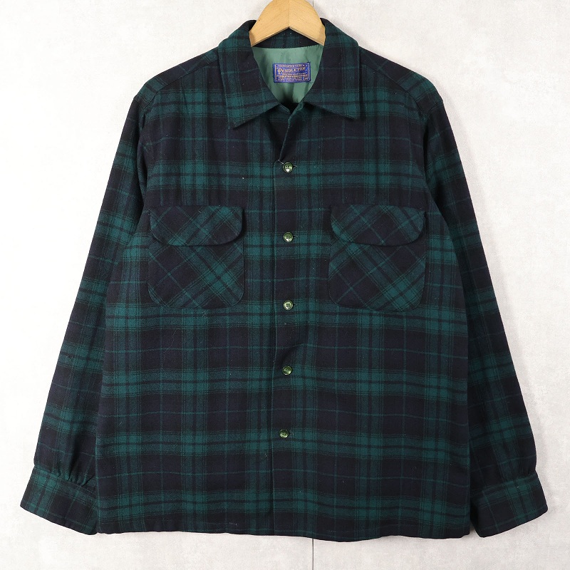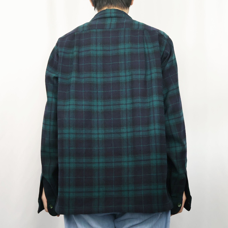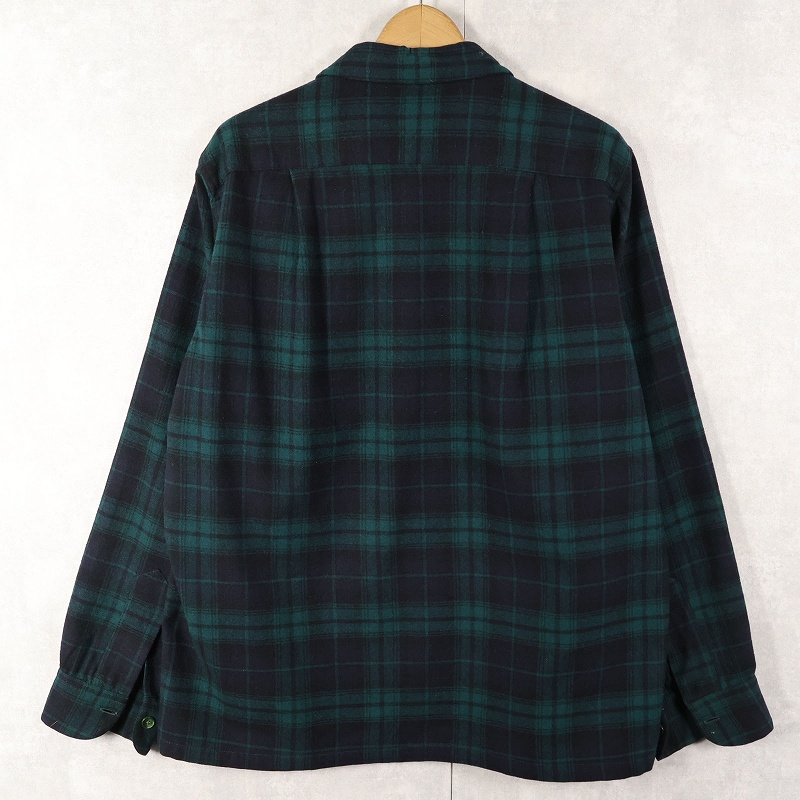 80's PENDLETON ブラックウォッチチェック柄 ウールオープンカラーシャツ M [160376]