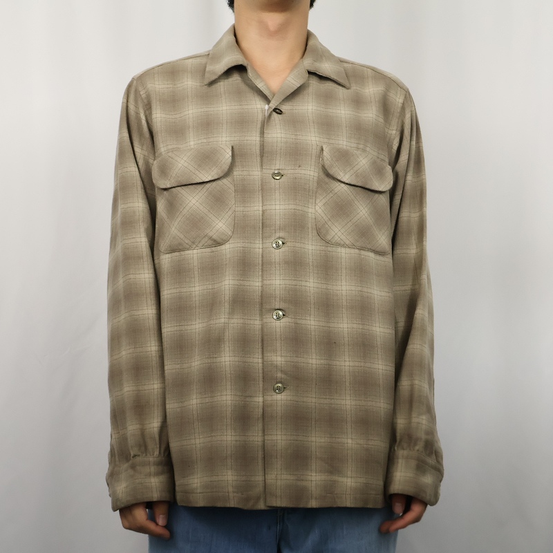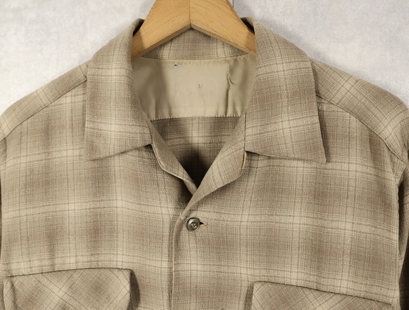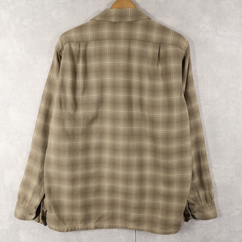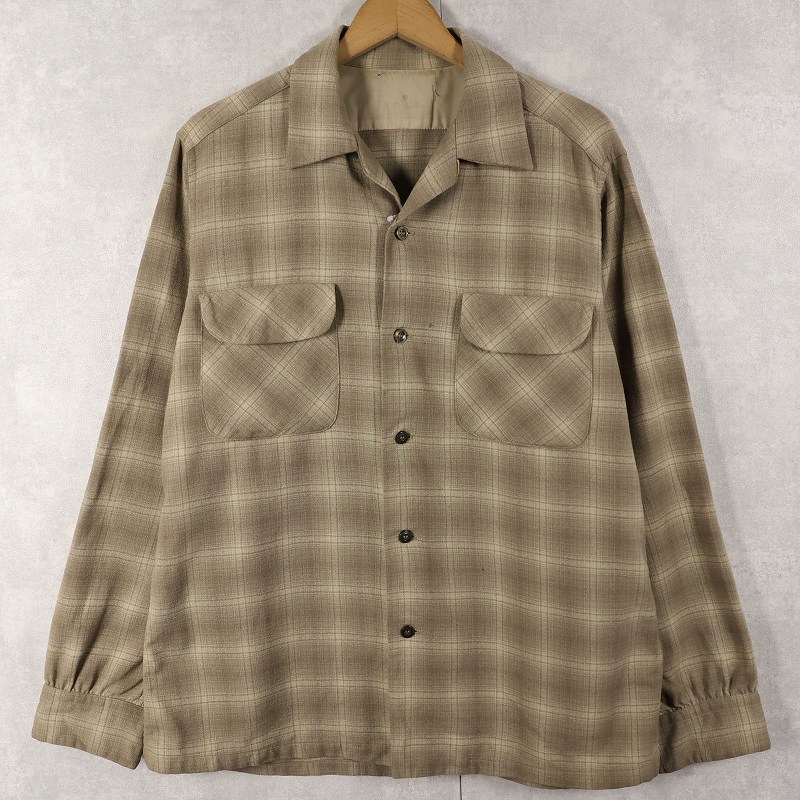 70〜80's PENDLETON オンブレーチェック柄 ウールオープンカラーシャツ M [160378]