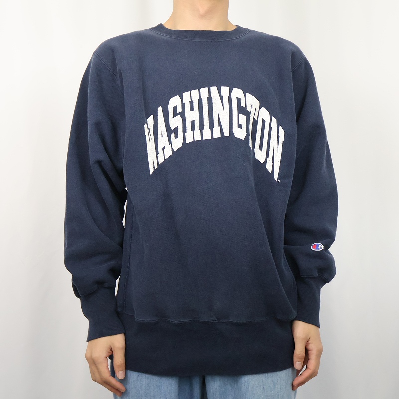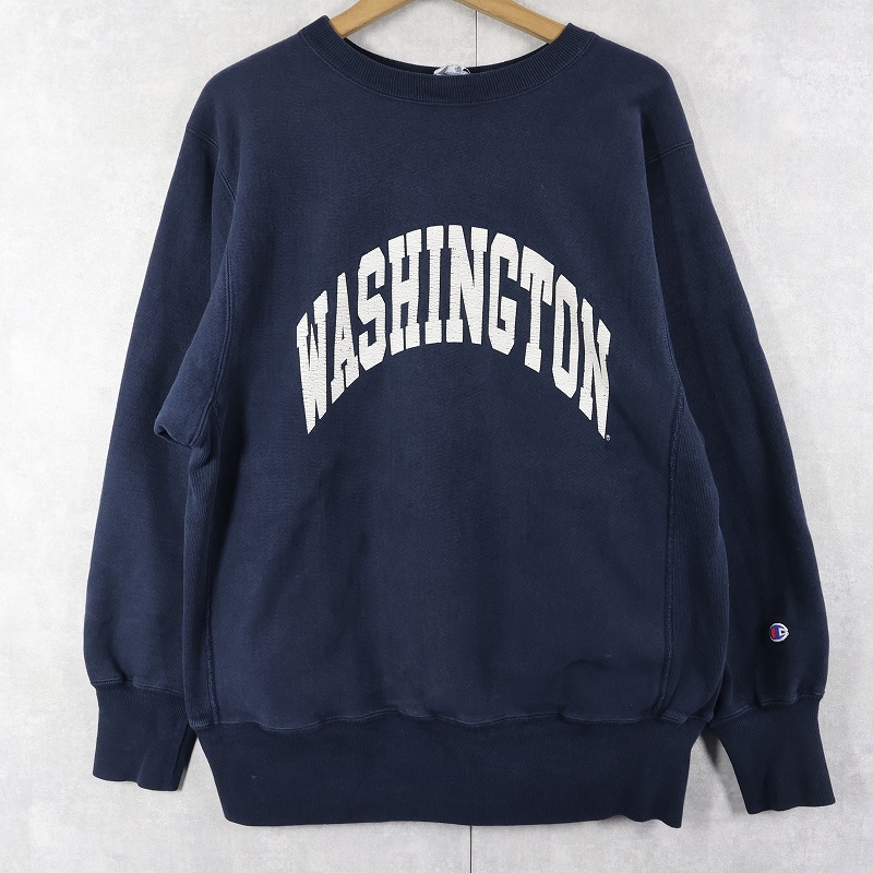 90's Champion REVERSE WEAVE "WASHINGTON" プリントスウェット NAVY L [160383]