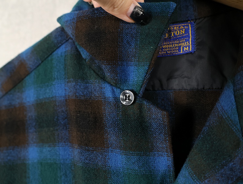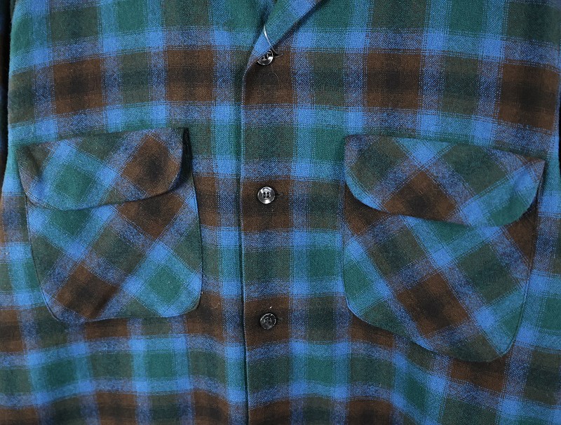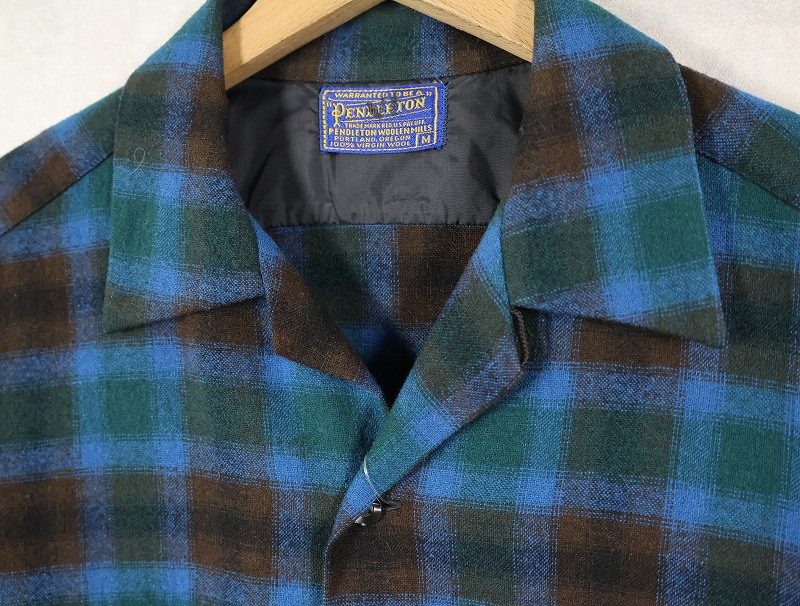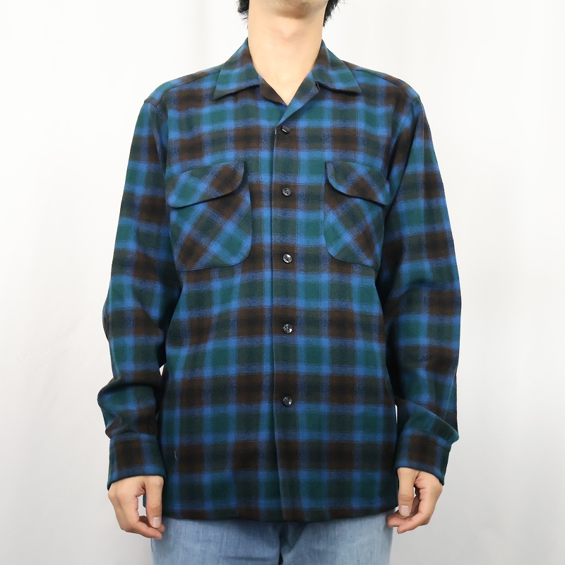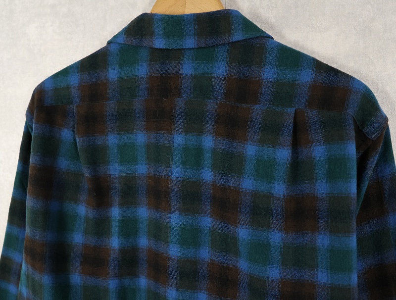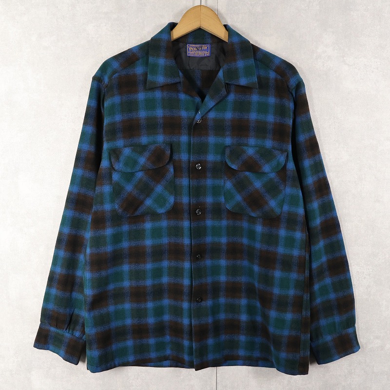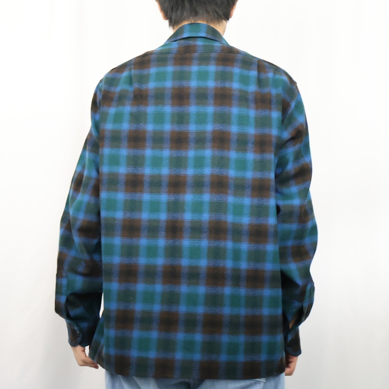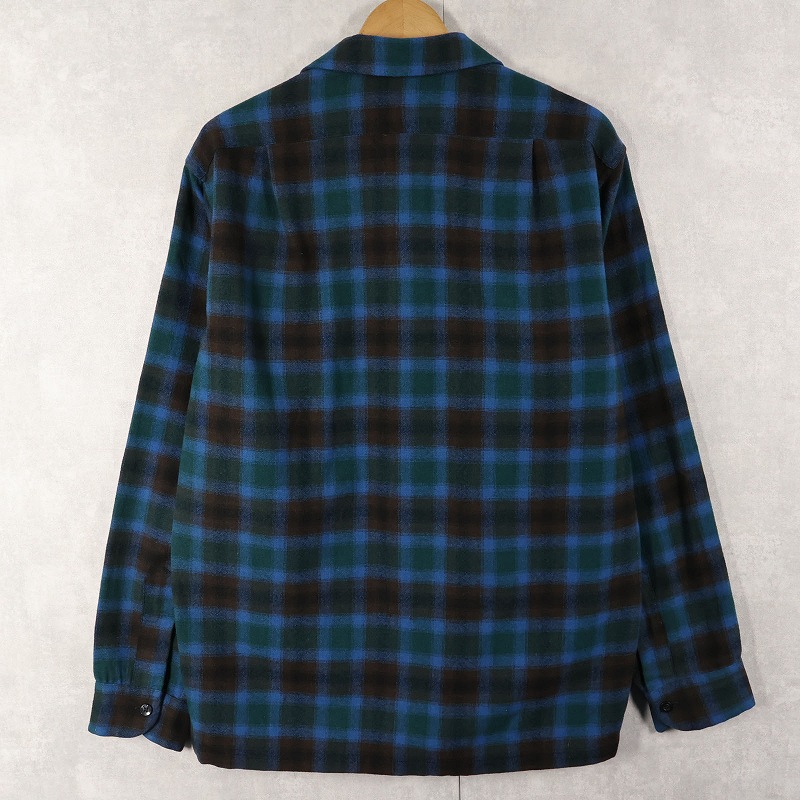 60's PENDLETON オンブレーチェック柄 ウールオープンカラーシャツ M [160387]