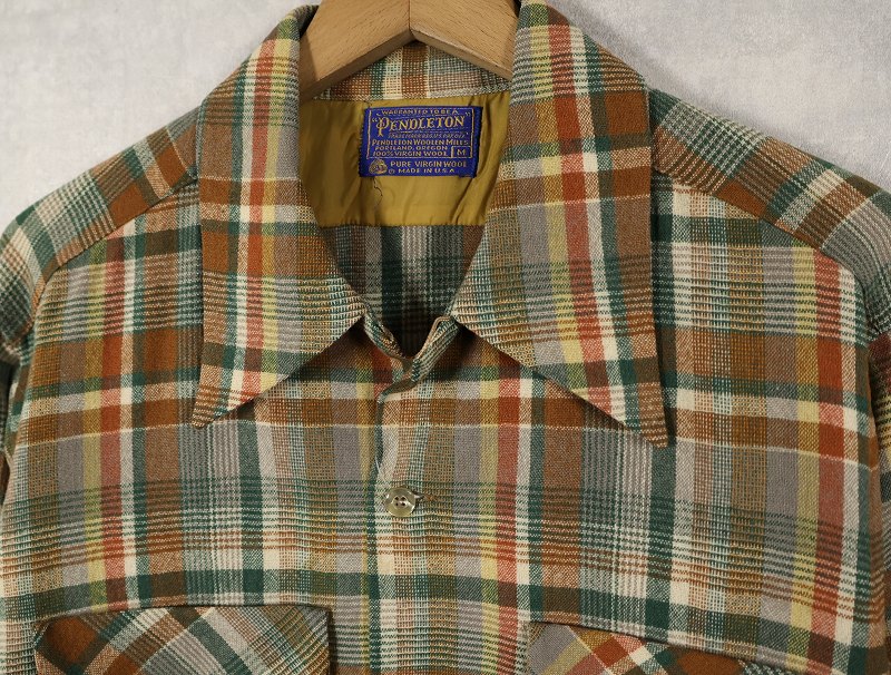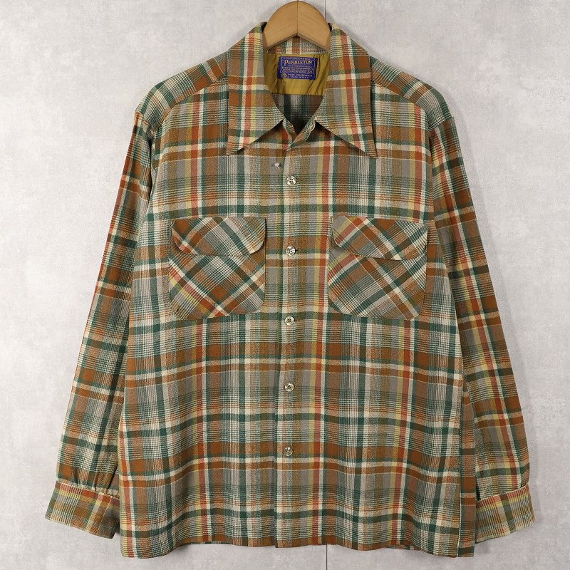 70〜80's PENDLETON USA製 チェック柄 ウールオープンカラーシャツ M [160388]