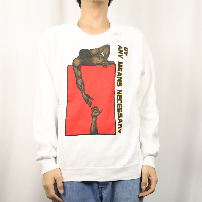80's USA製 "BY ANY MEANS NECESSARY" プリントスウェット L [160401]
