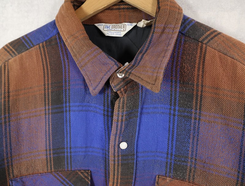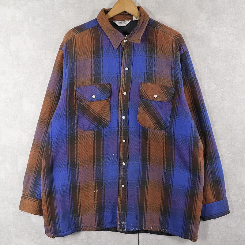 70〜80's FIVE BROTHERS チェック柄 キルティングライナー ヘビーネルシャツ XL [160415]