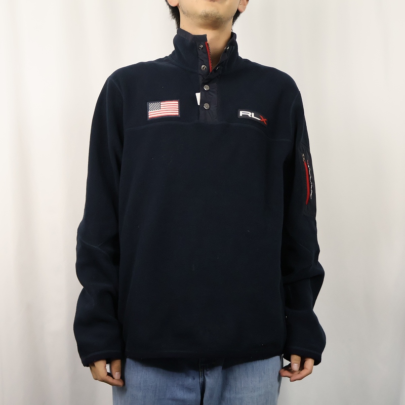 RLX POLO SPORT Ralph Lauren 星条旗 ハーフジップフリースジャケット NAVY L [160423]