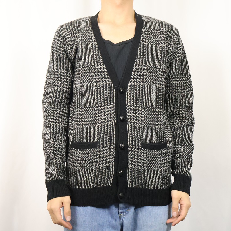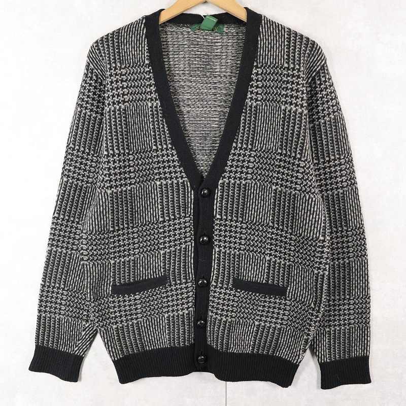 90's J.CREW 千鳥柄 ウールニットカーディガン S [160424]