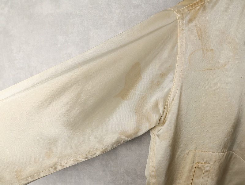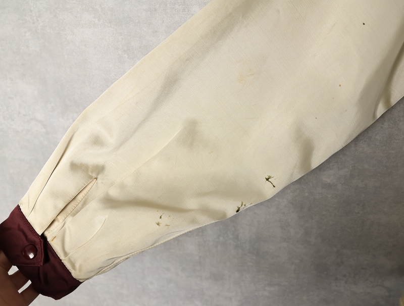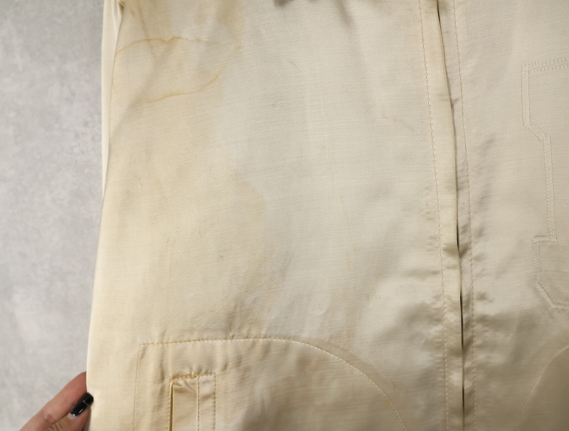 - シミ、黄ばみ、ワッペンがとれた跡がありますが、とても雰囲気の良い一点です。