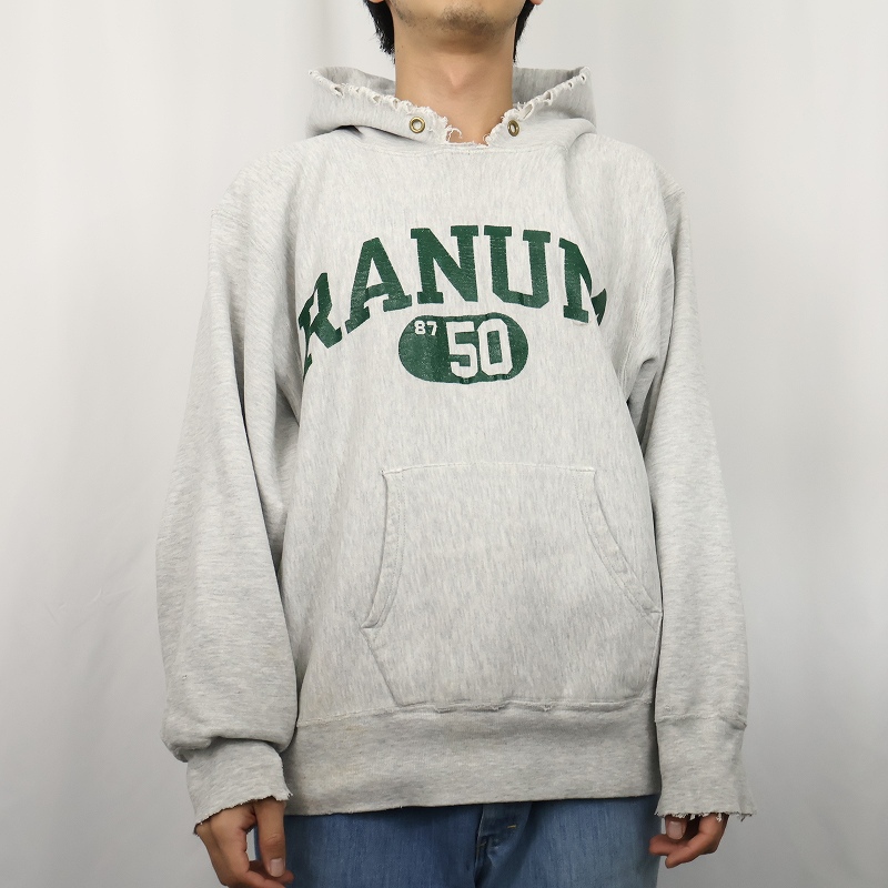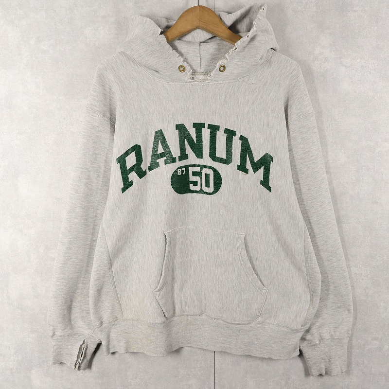 80's Champion REVERSE WEAVE トリコタグ USA製 "RANUM" プリントスウェットフーディ L [160461]